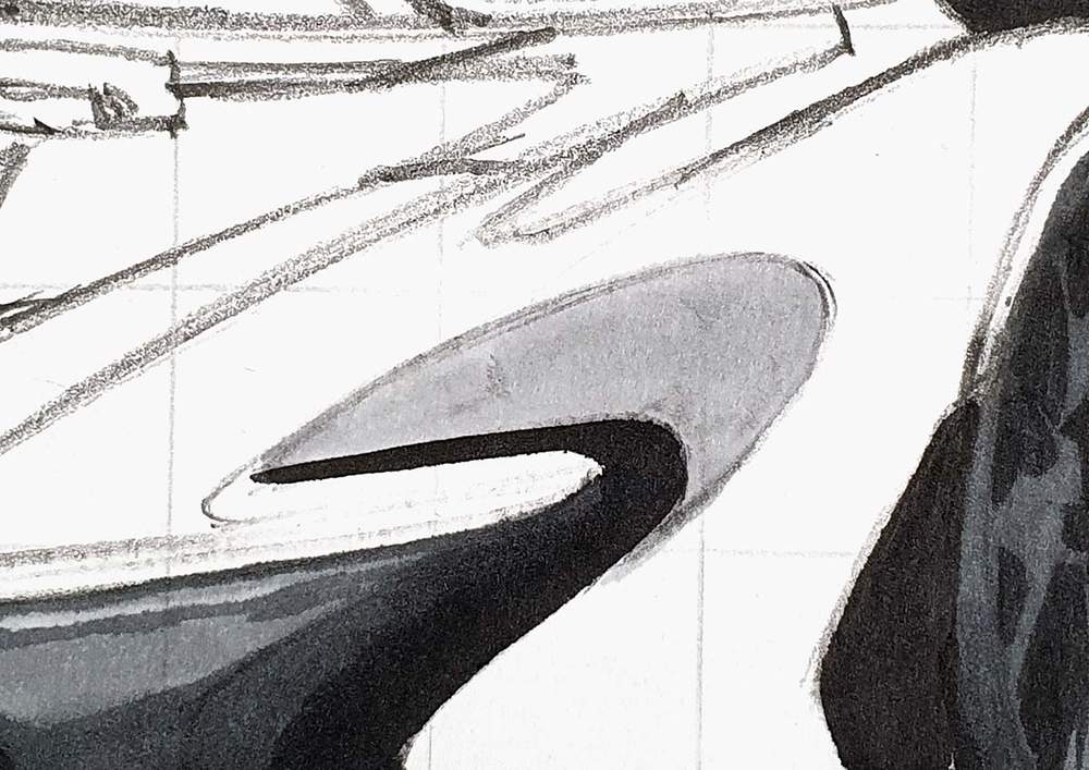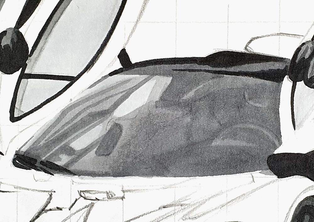 The last step of sketching the McLaren P1 outline is to sketch where the reflections are going to be. There weren't many reflections to sketch, but I still like to do it.