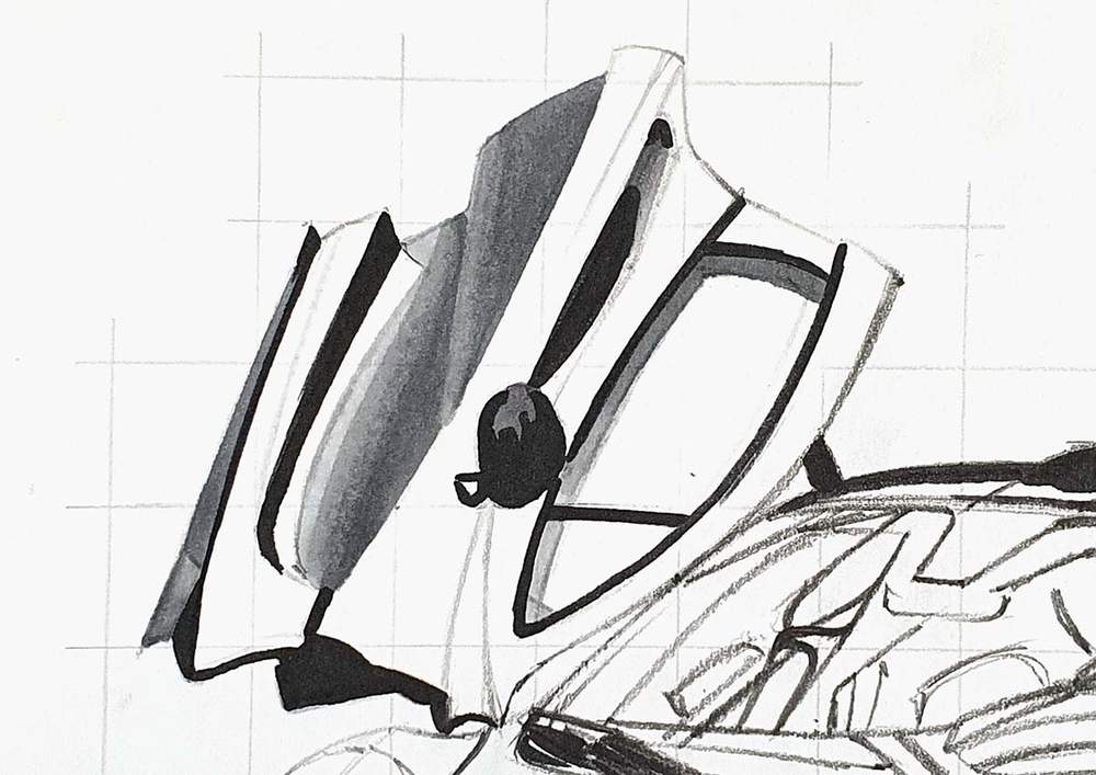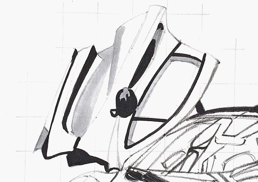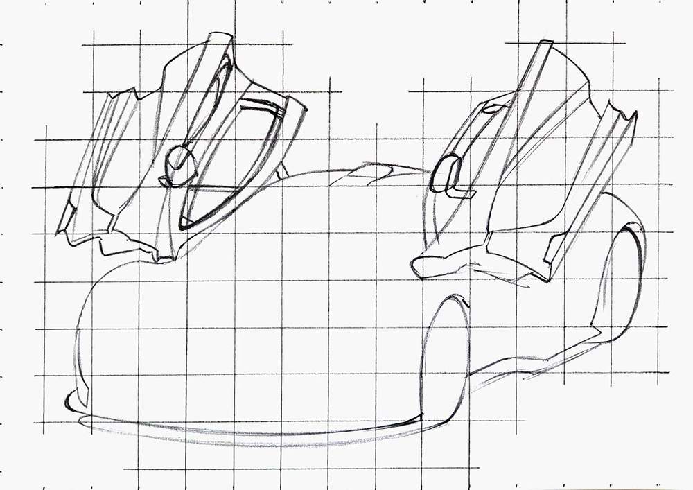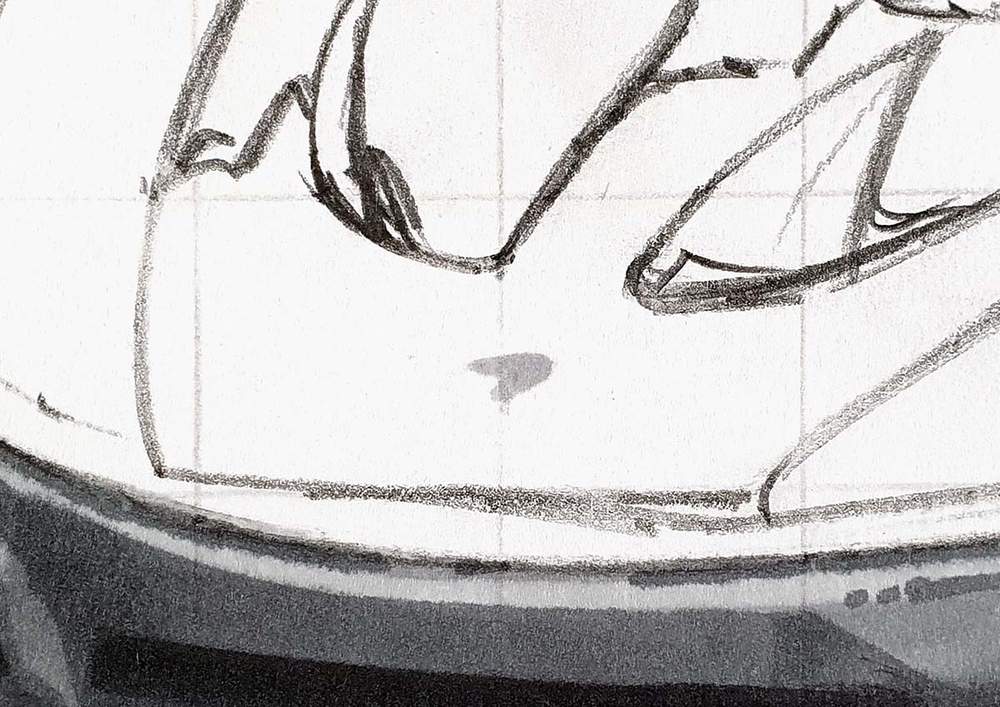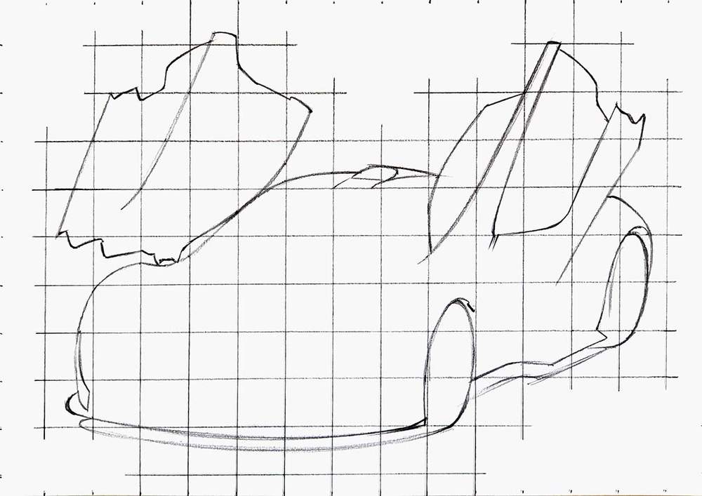 Then, I started sketching. I always start on the left of the car, choose an edge to sketch, and work my way from there up and around the car, deciding the outline into many easy-to-draw lines.