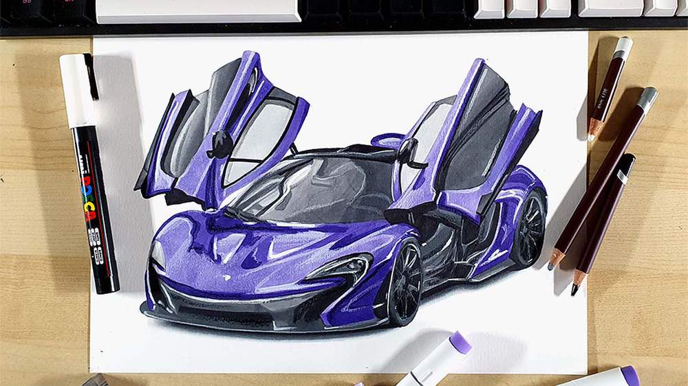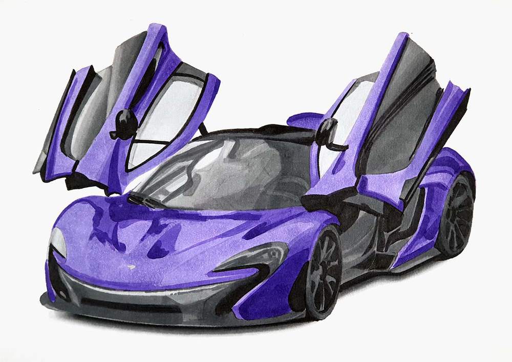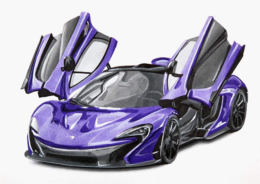 In this week's car drawing tutorial, I'll take you through my exact process of drawing this McLaren P1 in this beautiful purple. I'll show you every step and describe what I did in full detail so you can recreate this amazing drawing.