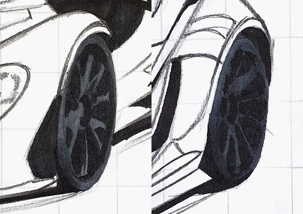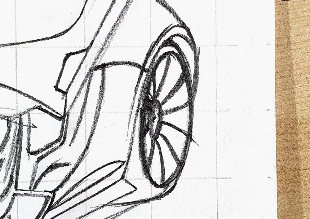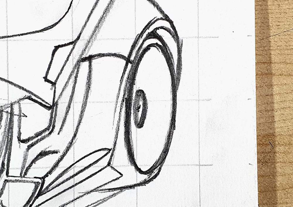 Next, I sketched the wheels. I wanted to explain this a little more in-depth as they can be quite tricky to get right.
