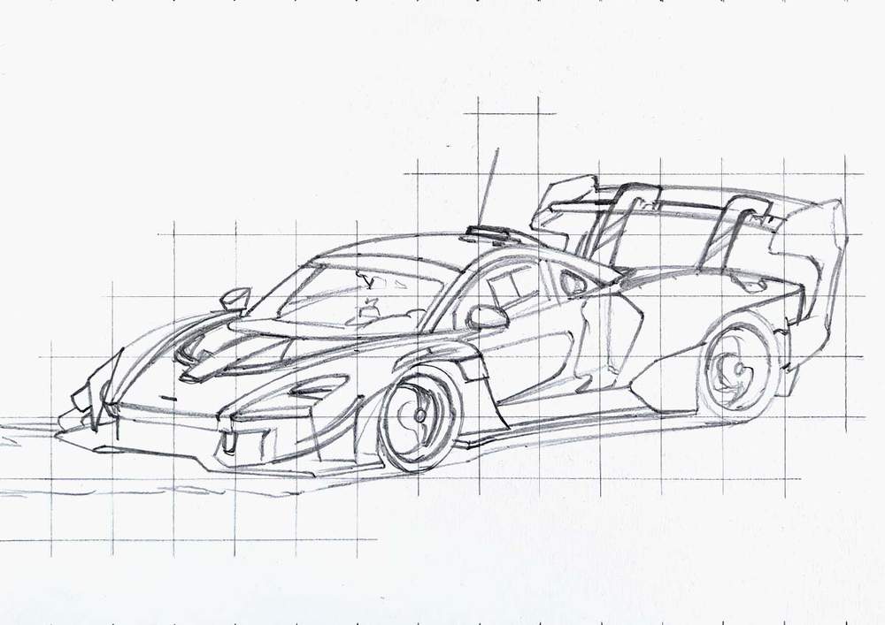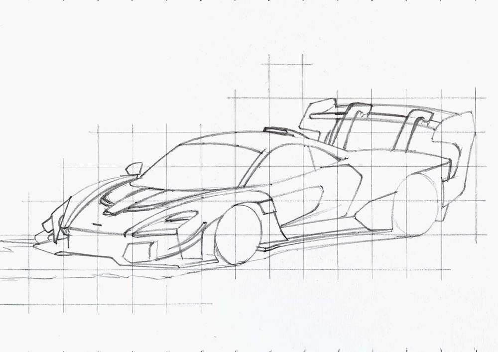 Now that the grid is done, it's time to start sketching the Senna GTR.