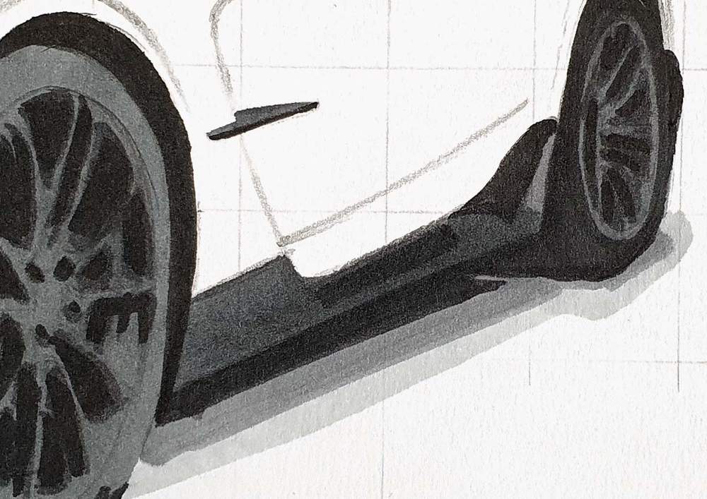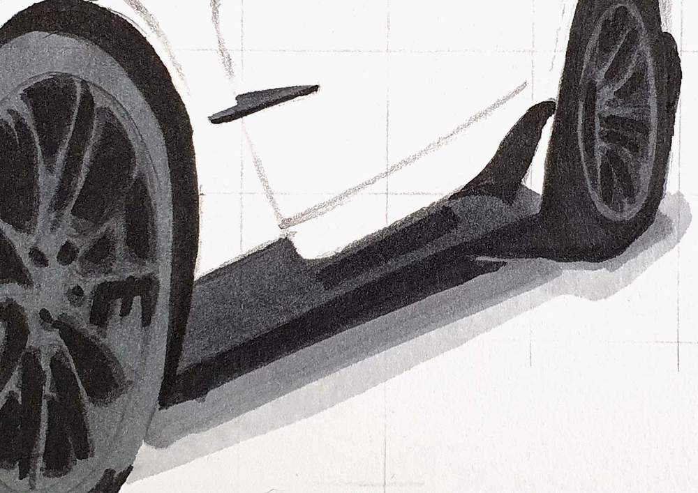 After sketching the car, I like to color all the pure black parts first.