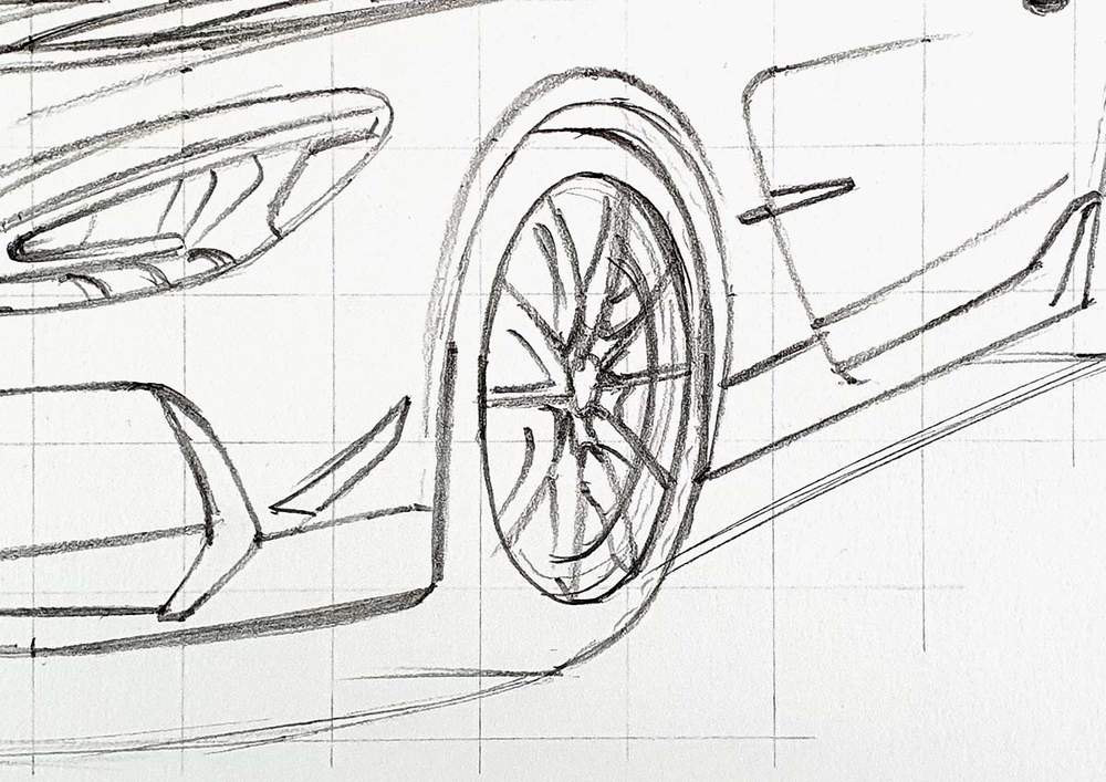 Now that the grid is in place, it's time to sketch the AMG GT Black Series.