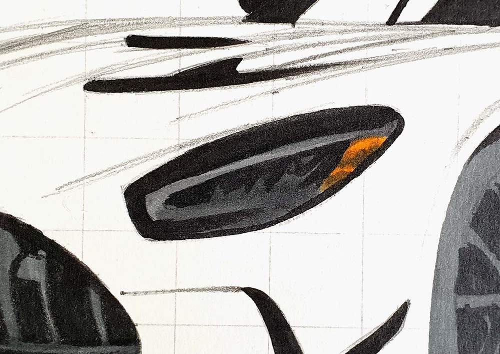 I started by sketching the outline first. This makes sketching all the parts and details of the car a lot easier.