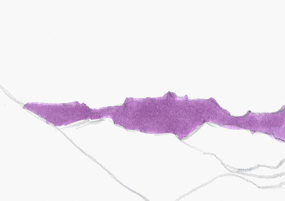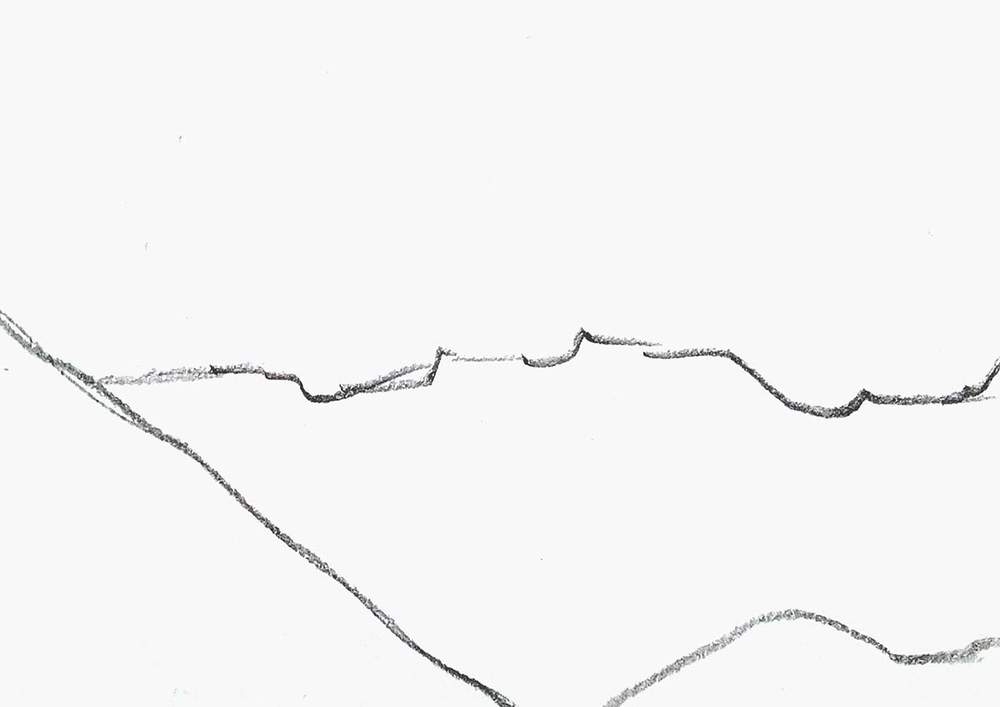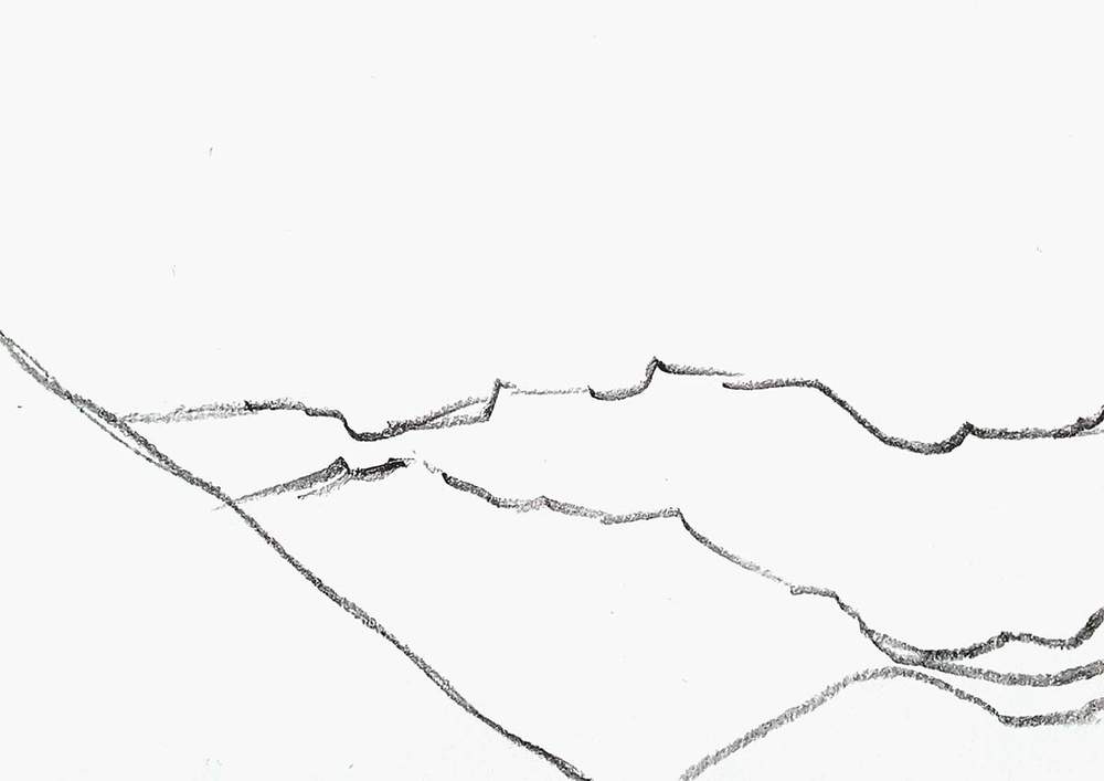 I sketched a diagonal line from the left down to the bottom of the paper. I made this line a little bit wavy as the edges of mountains usually are a little uneven.
