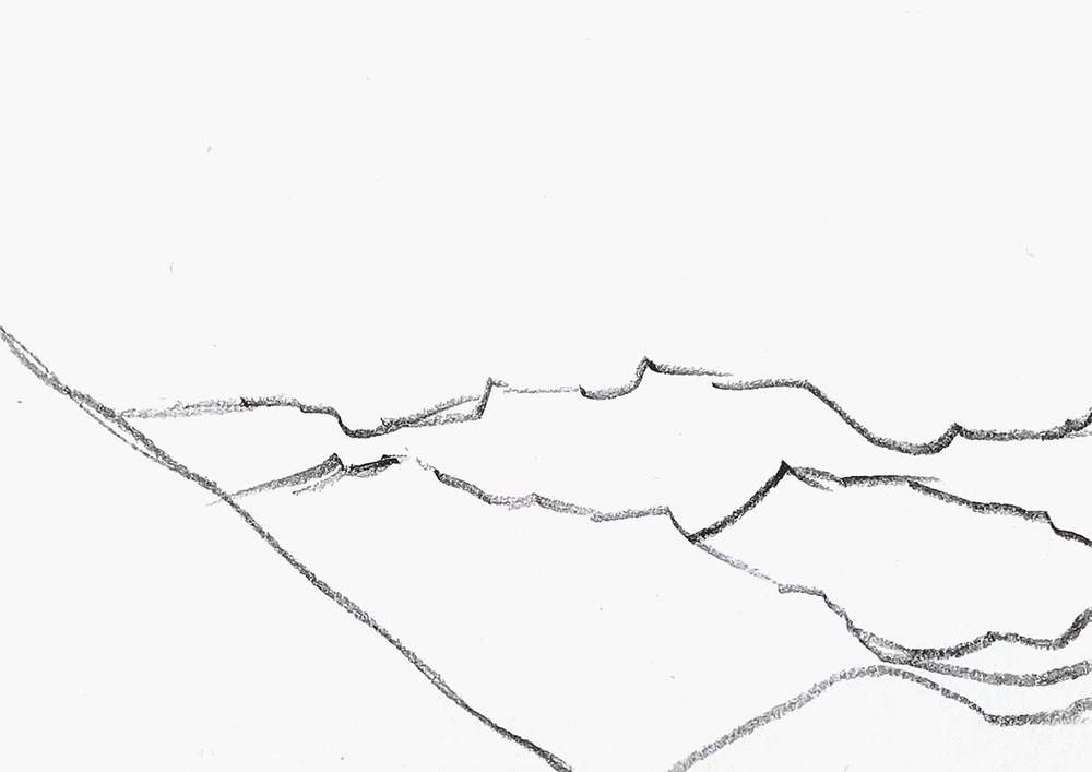 To sketch a mountain landscape, I first sketched the mountain in the foreground.