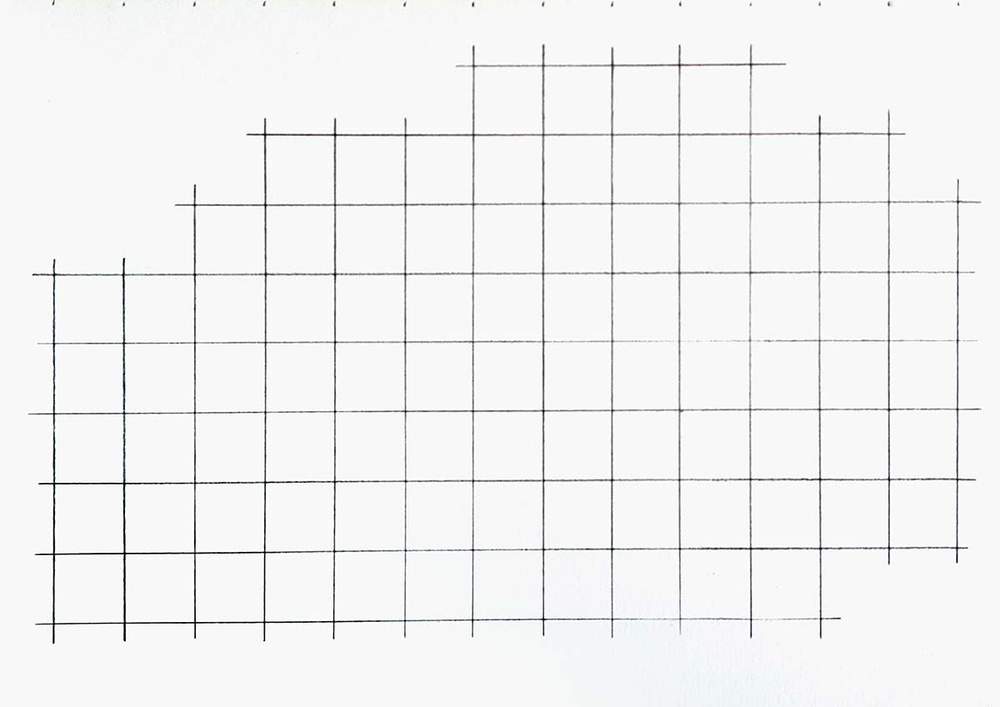 Next, I recreated that grid on my piece of paper. Each grid square is 2 by 2 cm and I only sketched the squares necessary for the sketch. However, if you're new to this technique, I recommend sketching all squares as this is a lot easier and you are less likely to make mistakes.