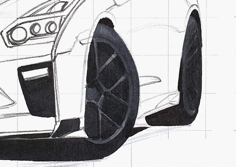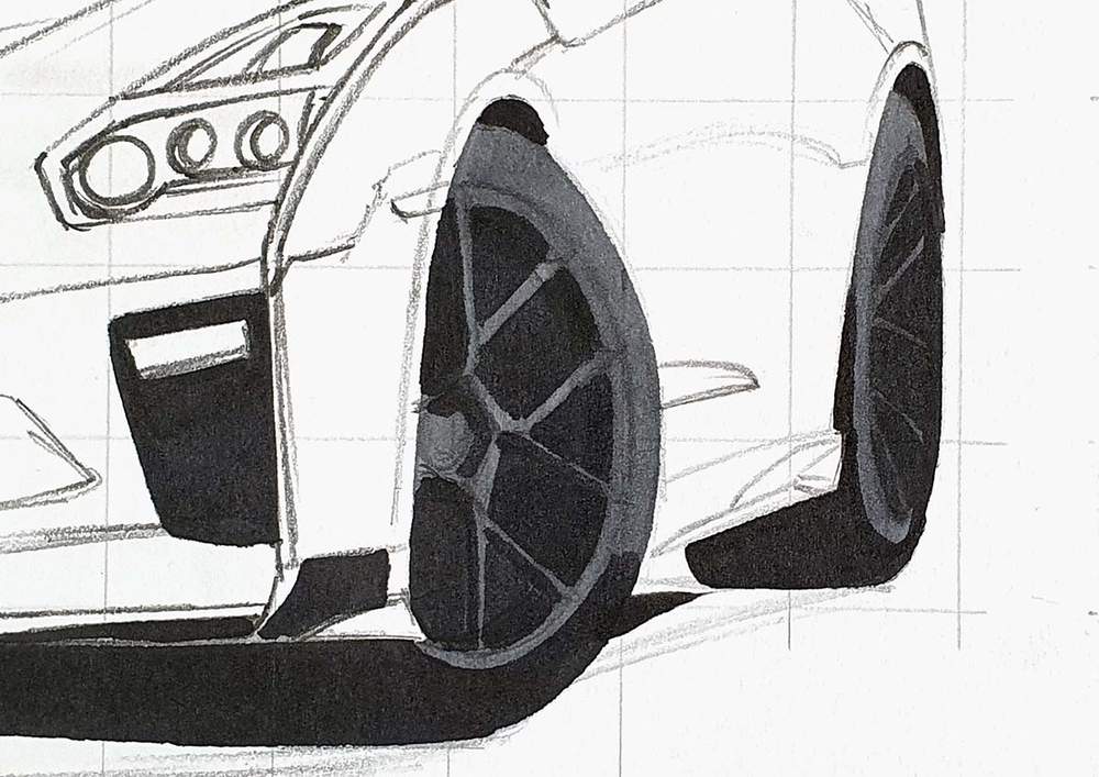 After that, I finally started sketching the car itself.