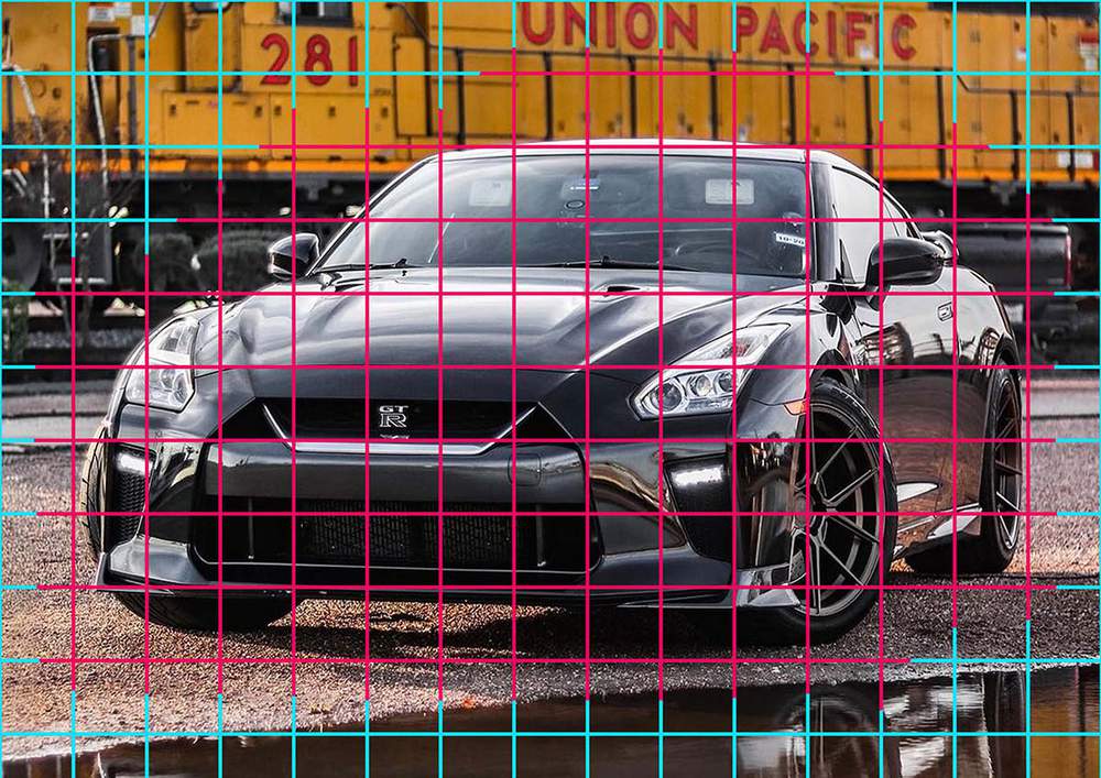 Next, I colored the shadow underneath the Nissan GTR.