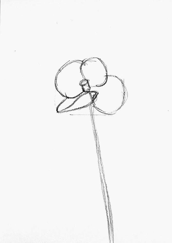 To sketch the poppy, I first marked the top, right, bottom, and left edges of the flower.