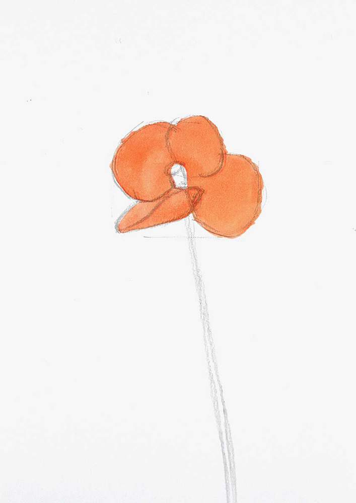 Step 3: Add Details To The Poppy Flower With A Few Colored Pencils