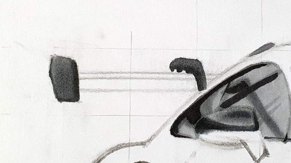 Sometimes the sketch looks pretty overwhelming. So what I like to do then is to color all pure black parts. For some reason, this makes the drawing look a lot less complicated for me.