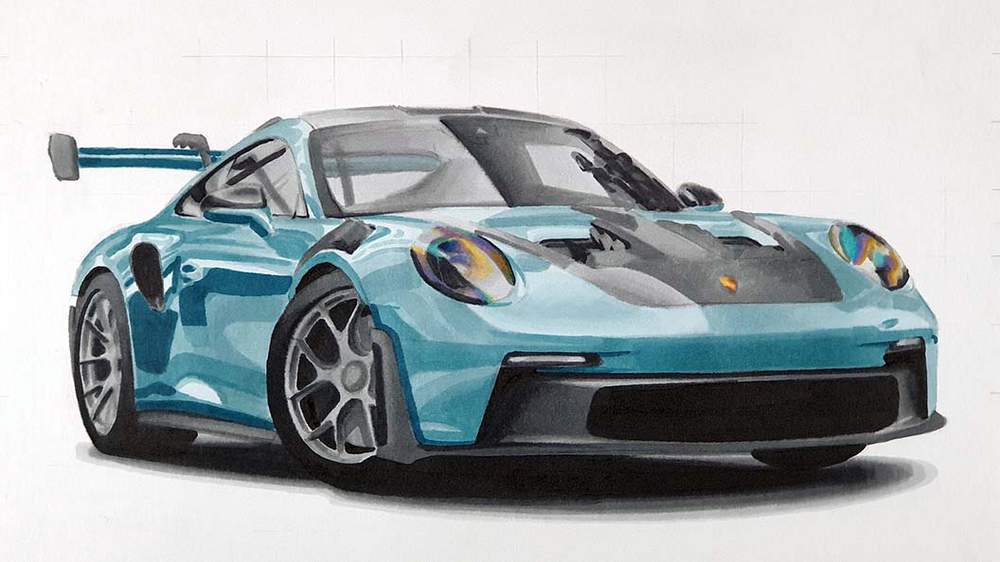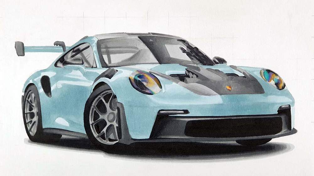 In today's car drawing tutorial, I'm going to show you how to draw a Porsche 992 GT3 RS, the latest generation Porsche 911 GT3 RS.