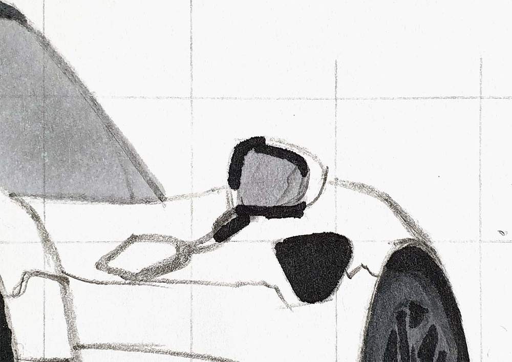 Next, I sketched all the reflections on the body of the car. Just the basic shapes.