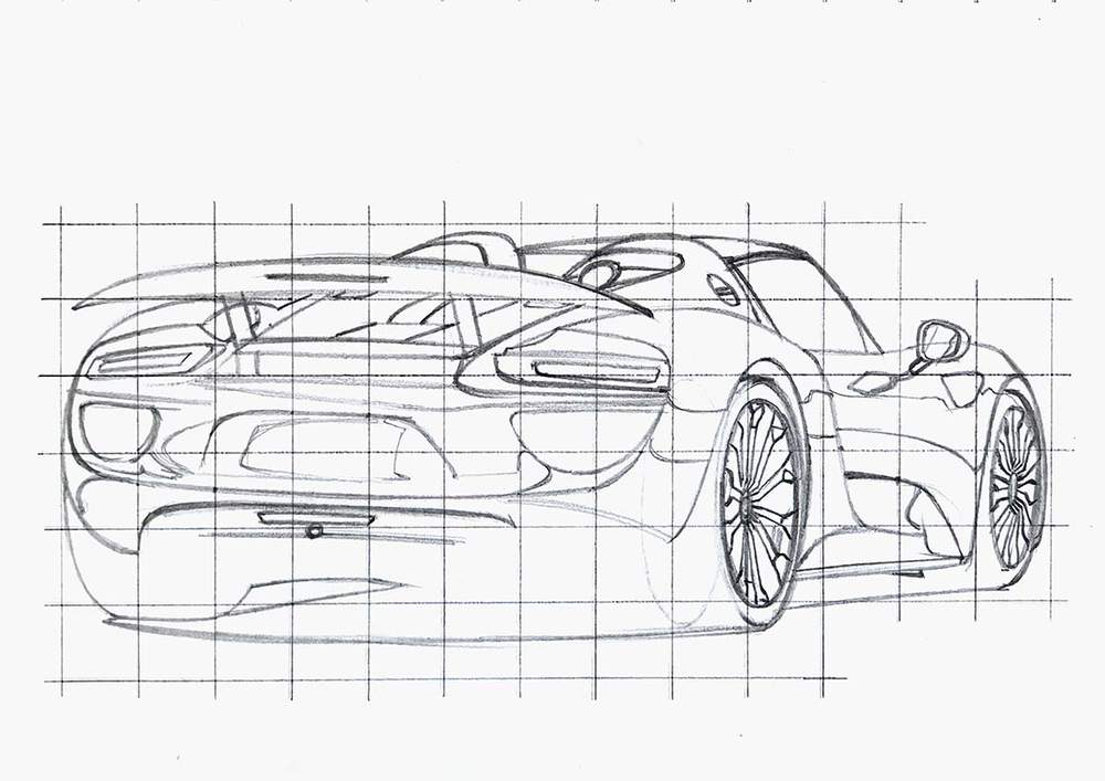 I only sketched the squares necessary to sketch the Porsche 918 Spyder.