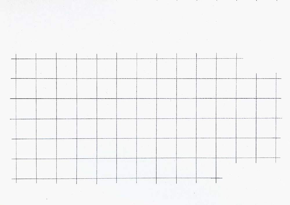 Next, I sketched the grid on my paper sketching the same amount of grid lines and squares. Each square has a height and width of 2 cm. This fits the paper pretty well.