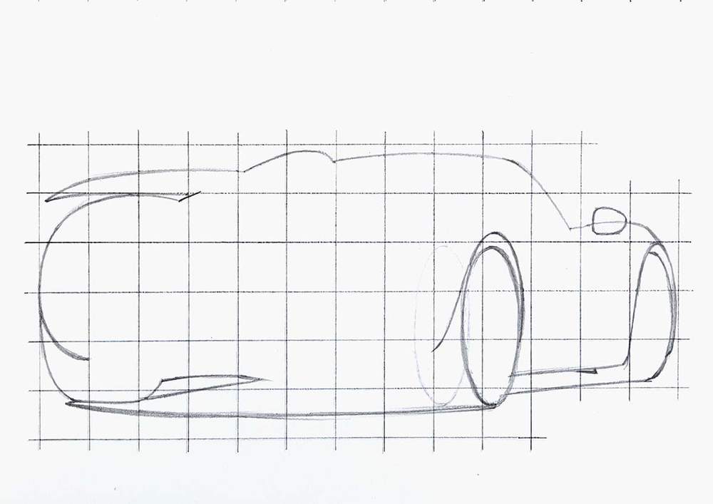 Now that the grid is done, we can start sketching the outline of the Porsche 918.