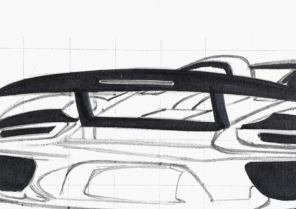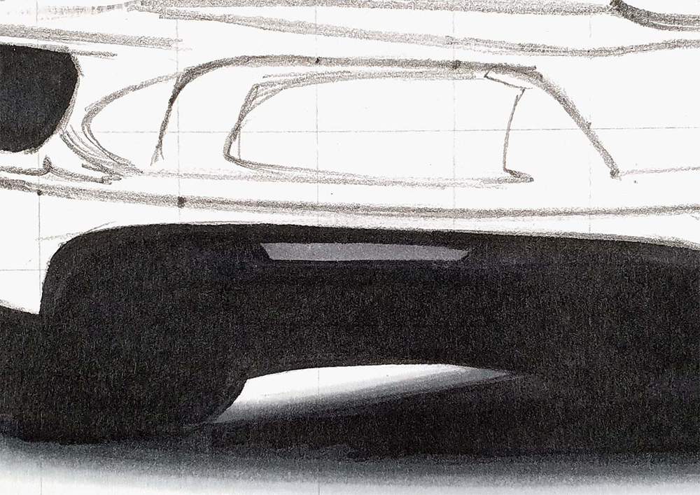 I started sketching all the bigger parts and lines like the grills, the rear deck, the body lines, etc.