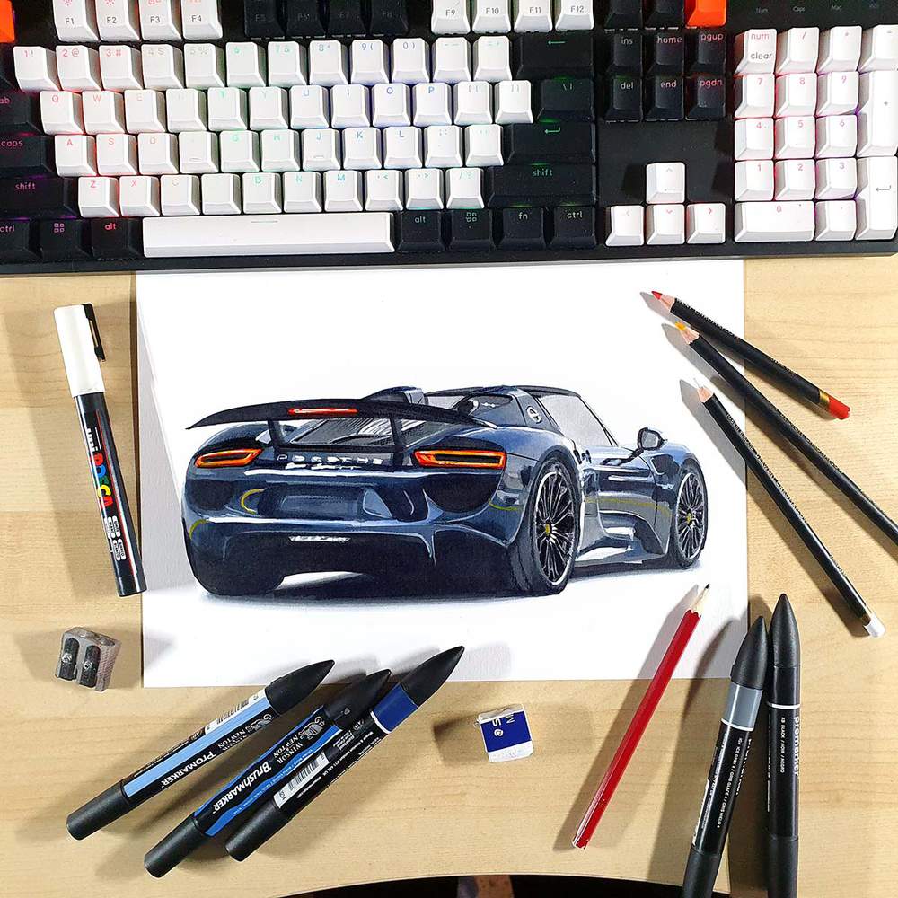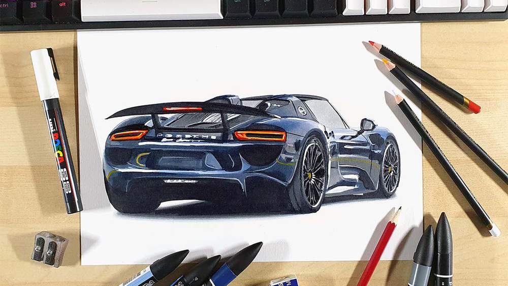 And That's How You Make a Realistic Porsche 918 Spyder Drawing