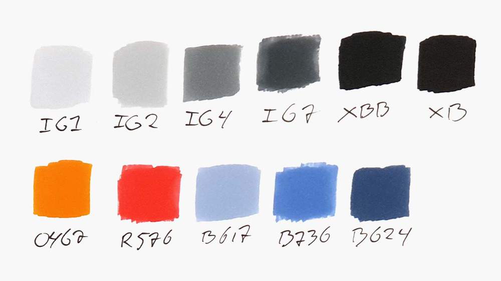 To be more specific, I used the Winsor & Newton Promarkers in the colors Ice Grey 1 (IG1), Ice Grey 2 (IG2), Ice Grey 4 (IG4), Ice Grey 7 (IG7), Blue Black (XBB), Black (XB), Pumpkin (O467), Lipstick Red (R576), Cornflower (B617), China Blue (B736), and Midnight Blue (B624). I also used the Colorless Blender.
