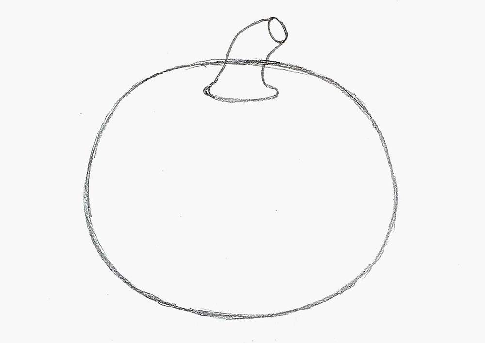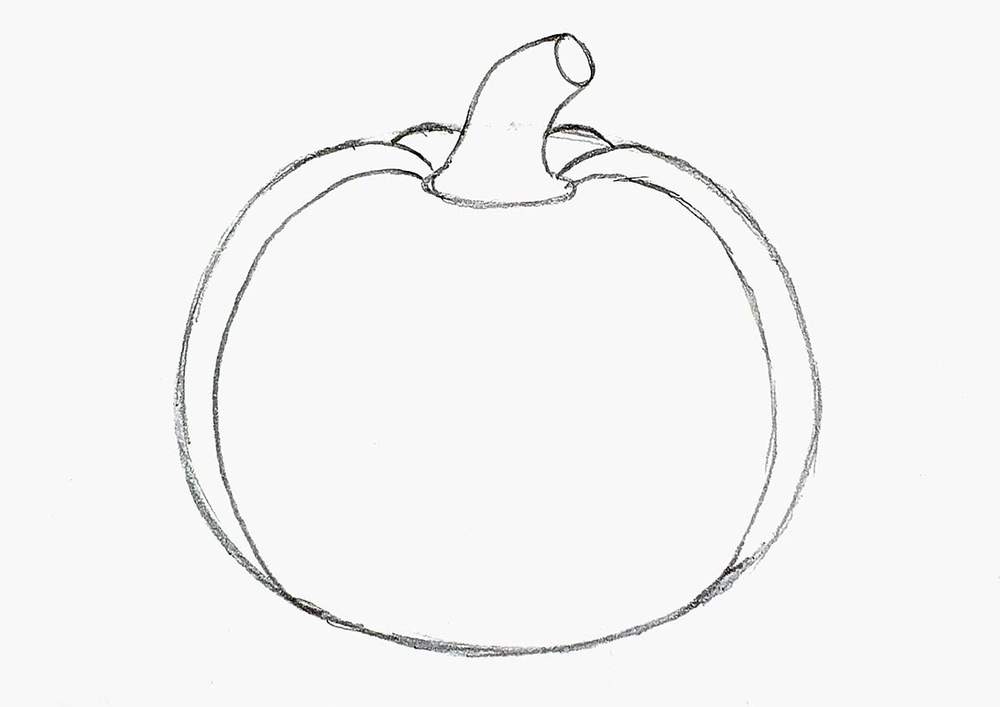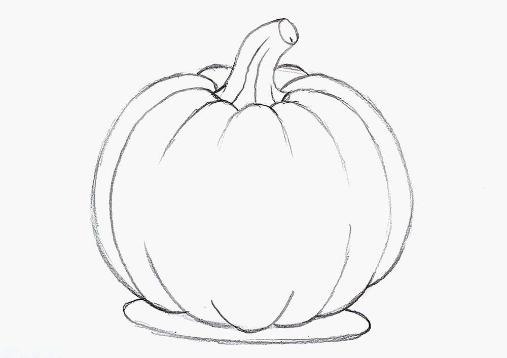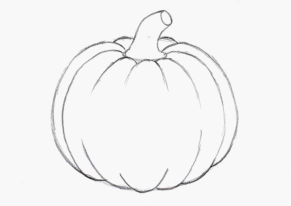 I first sketched the outer edges of the pumpkin and then added the first row of ribs.