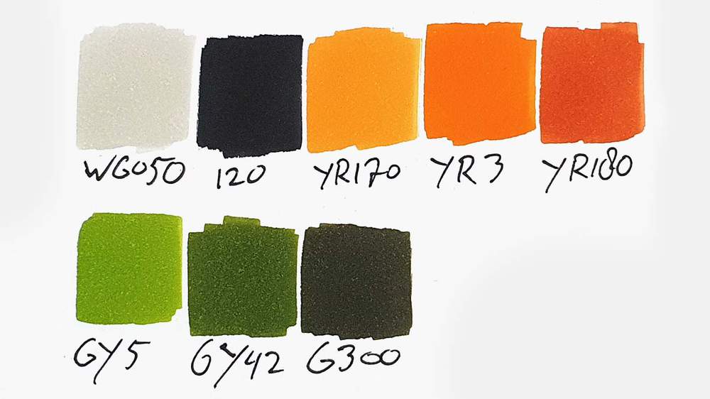 To make this drawing, I used Ohuhu Honolulu markers in the colors Warm Grey 05 (WG050), Black (120), Chrome Orange (YR170), Orange (YR3), Lipstick Orange (YR180), Absinthe (GY5), Bronze Green (GY42), and Dark Olive (G300). You can also buy these colors individually here.