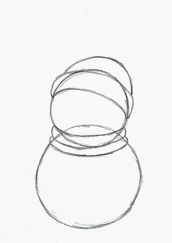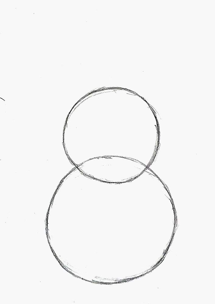 To draw this snowman, I started by sketching a big circle towards the bottom of my paper.