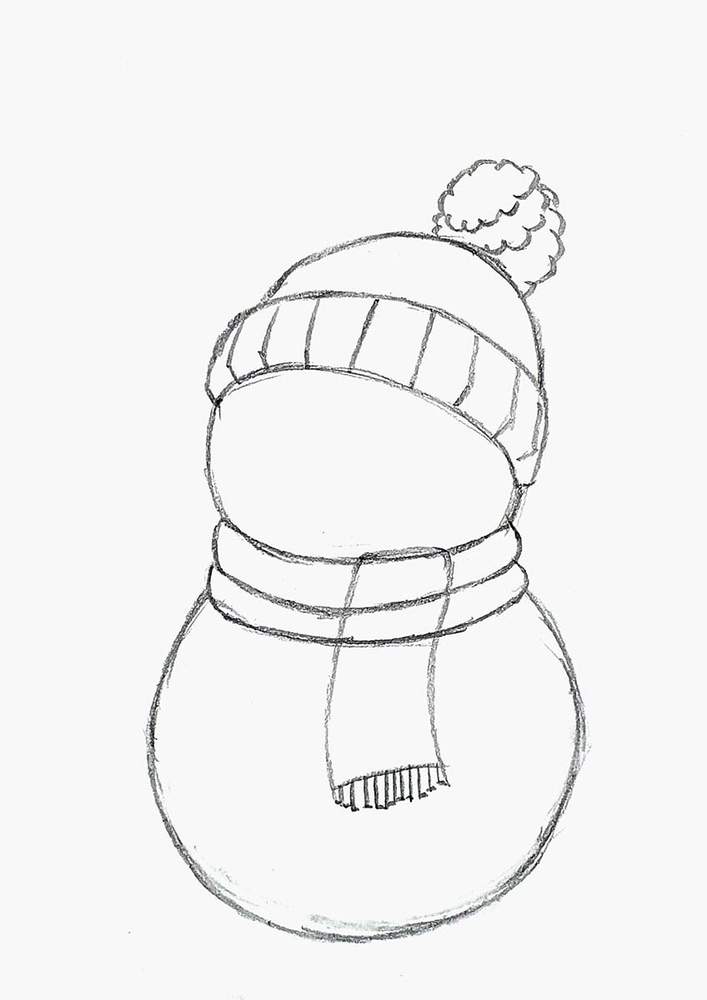 Step 2: Sketch The Scarf & Christmas Hat On The Snowman