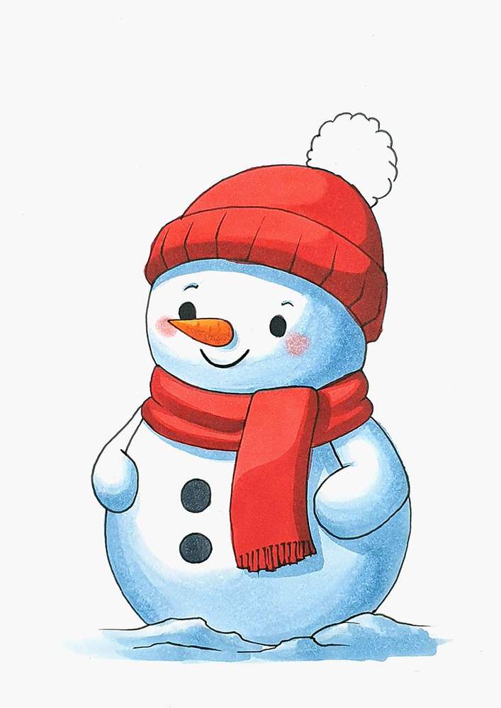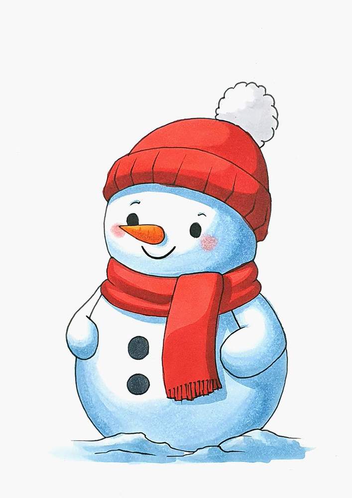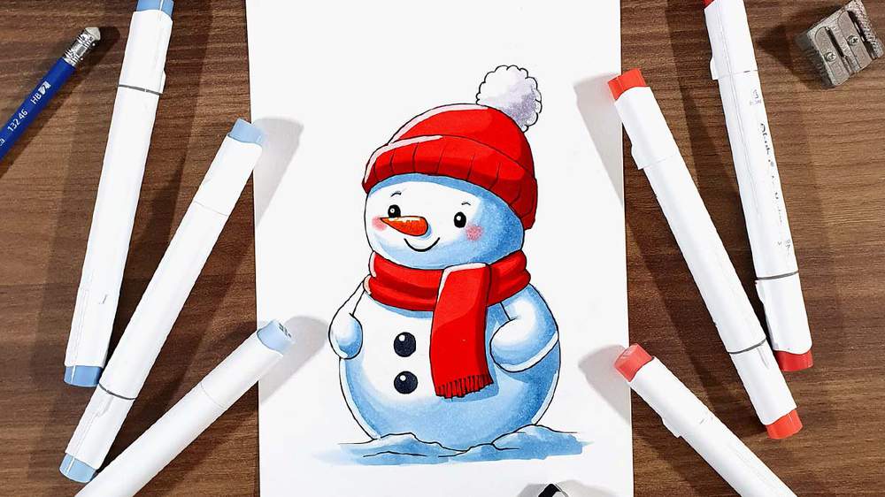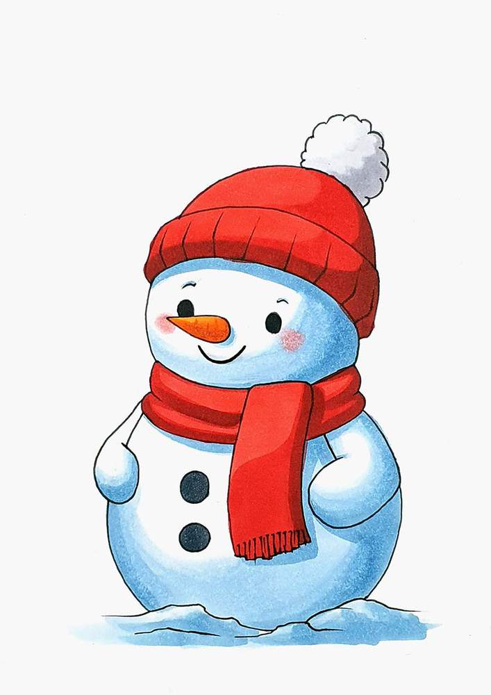 In this step-by-step tutorial, I’ll show you exactly how I created this cute snowman drawing, from the sketch to the final colorful details.