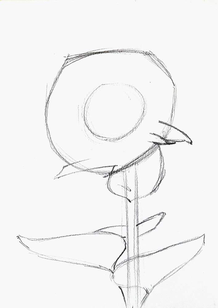 Based on those markings, I sketched the outline of the flower and I sketched the base of the stem.