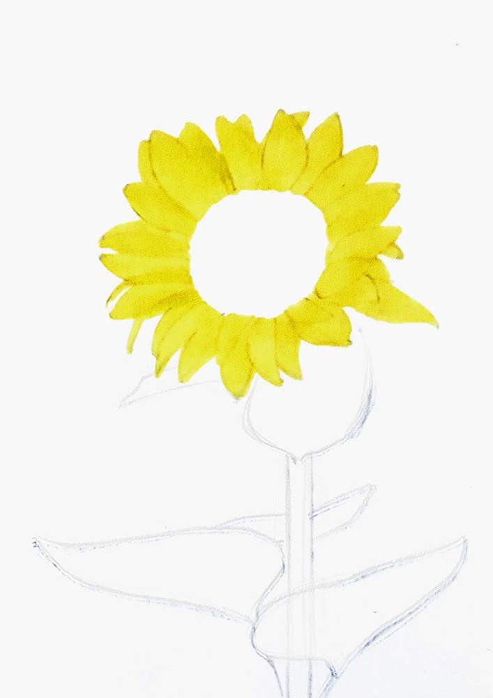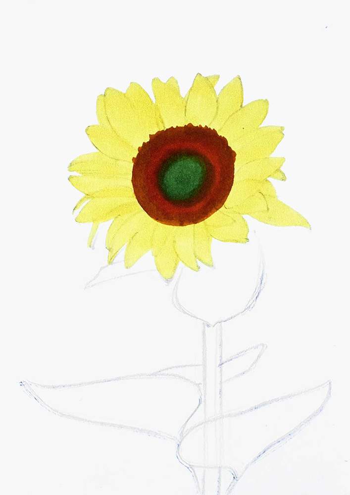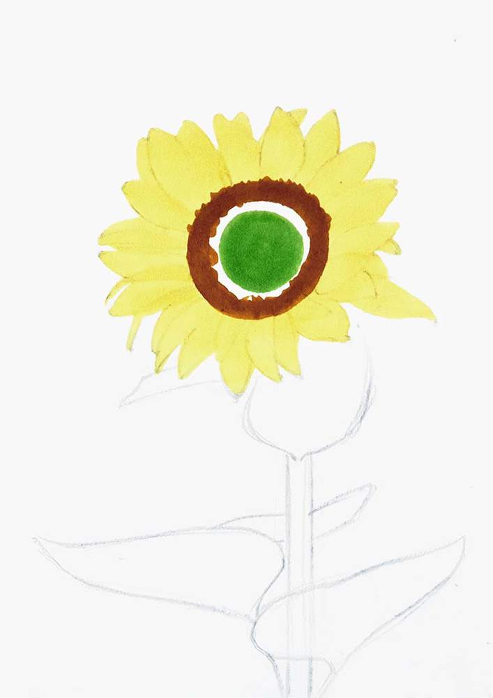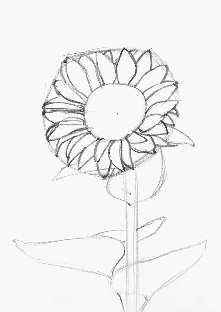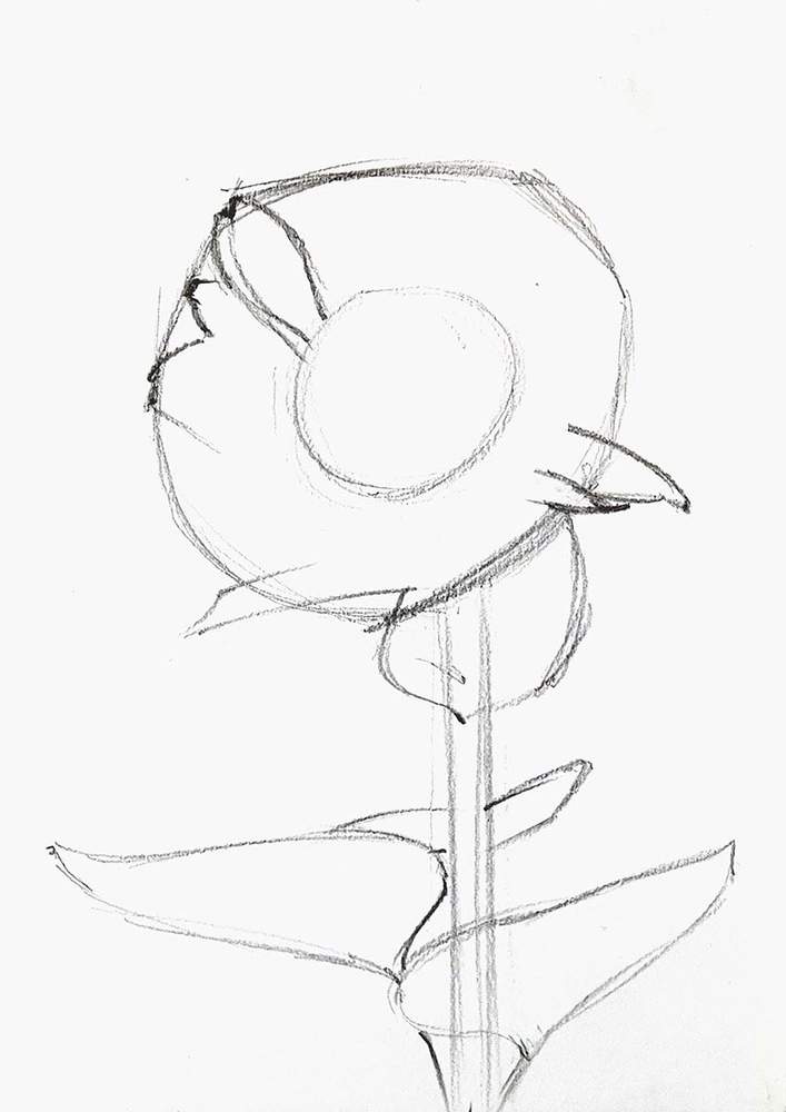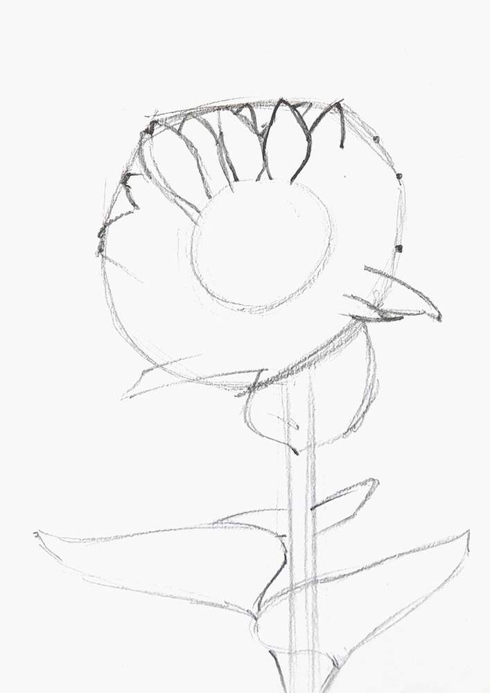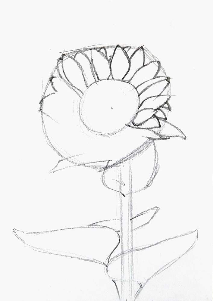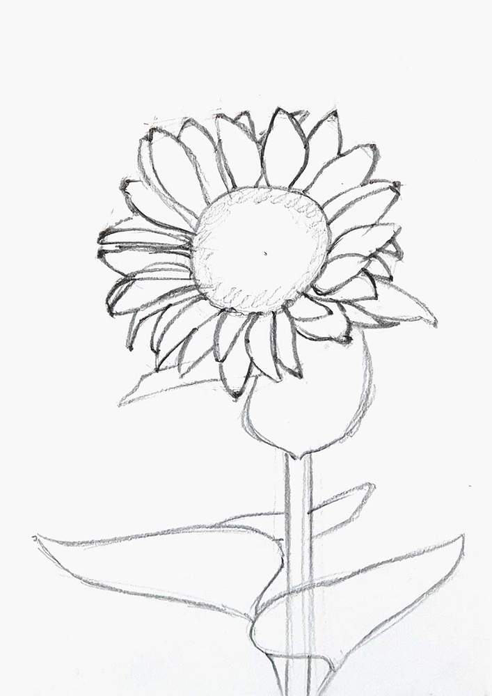 Next, I roughly sketched the leaves on the stem of the sunflower.