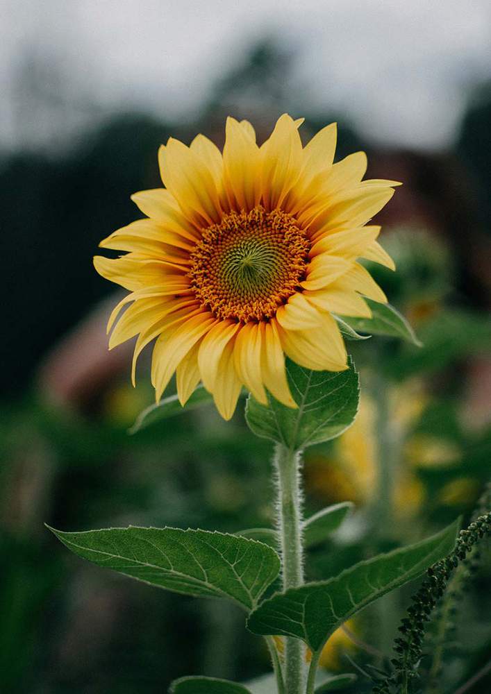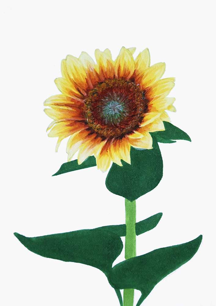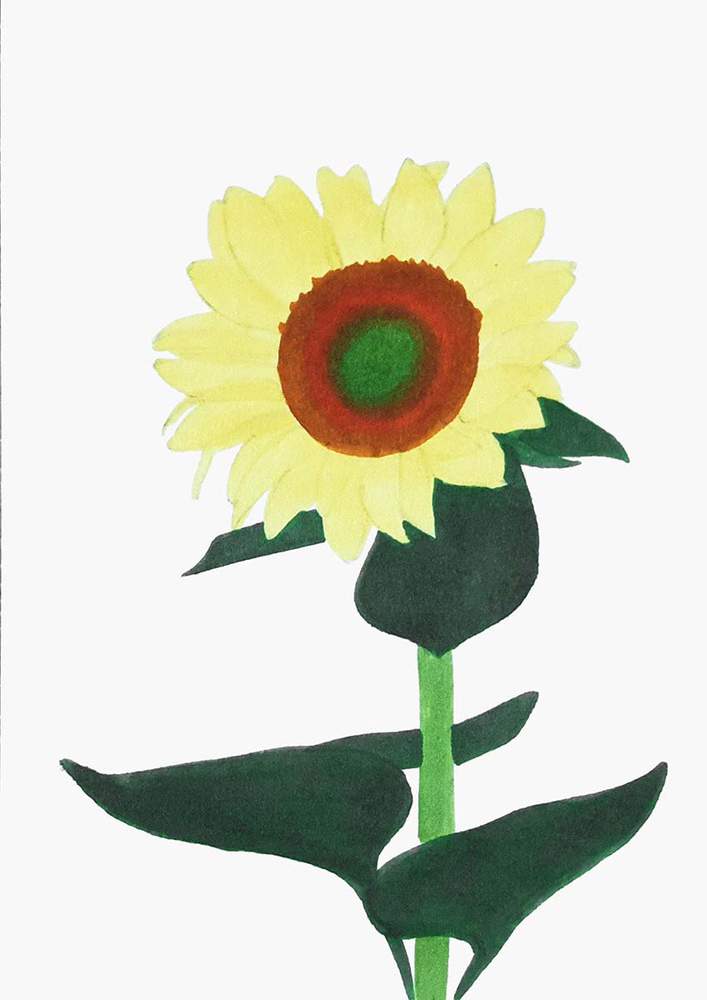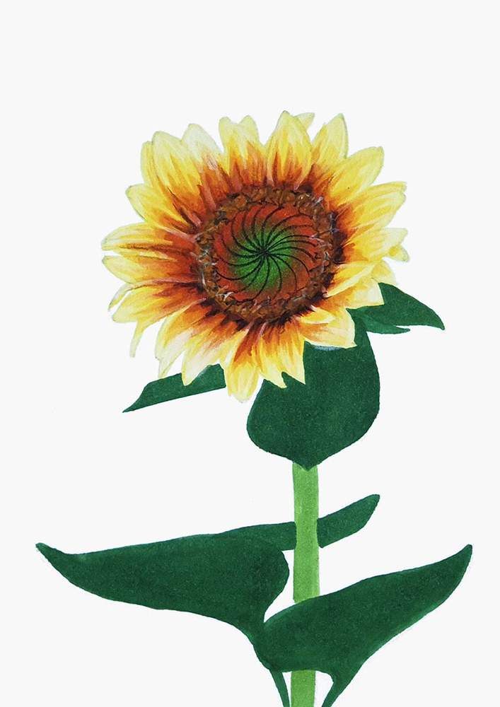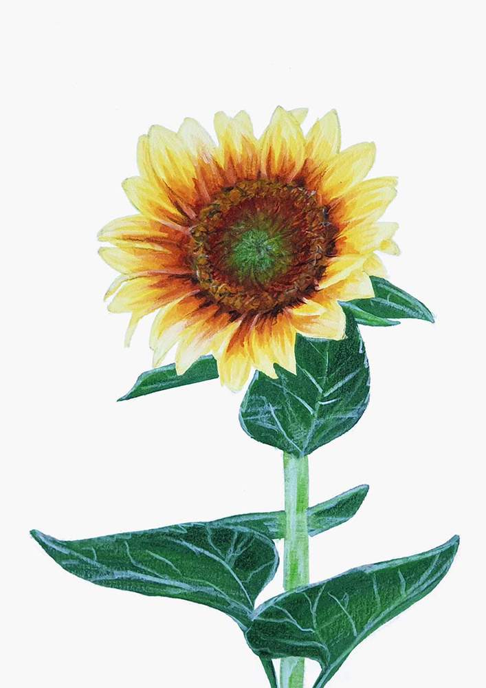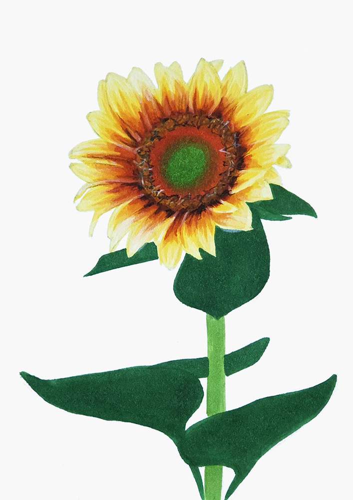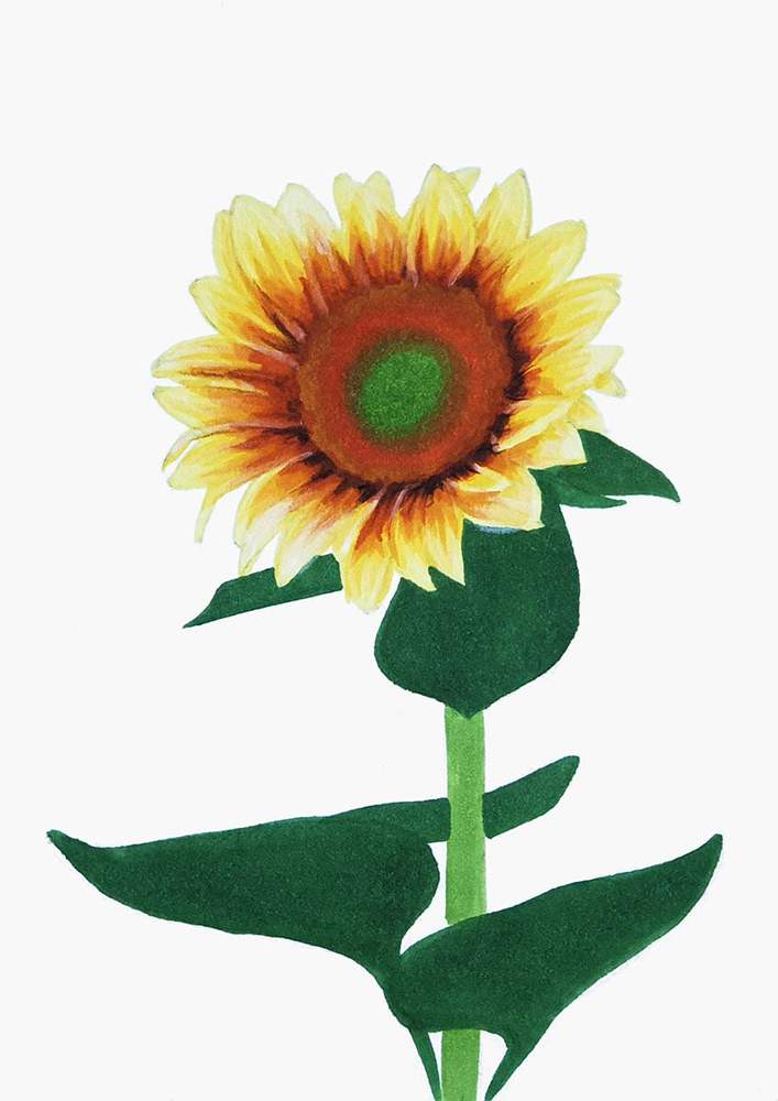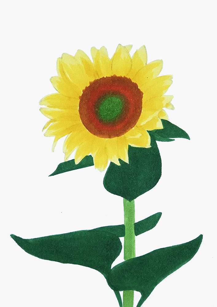 Next, I roughly sketched the leaves on the stem of the sunflower.