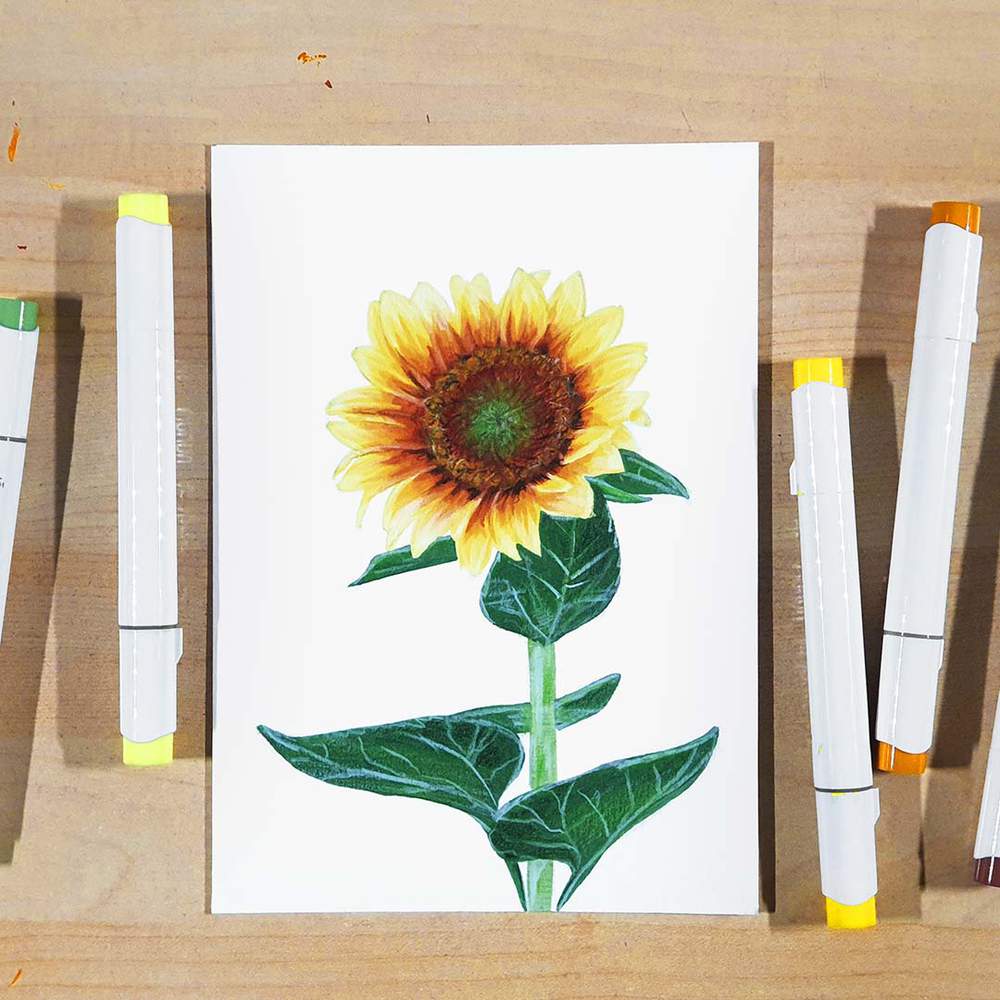 To make this sunflower drawing, I used a combination of alcohol markers and colored pencils.