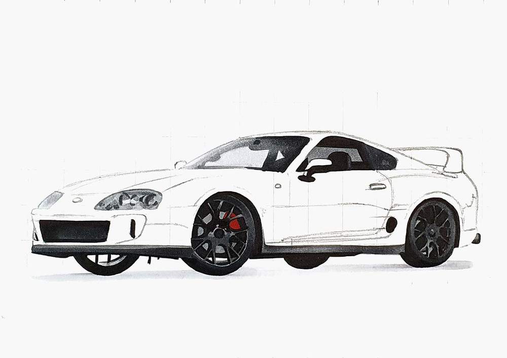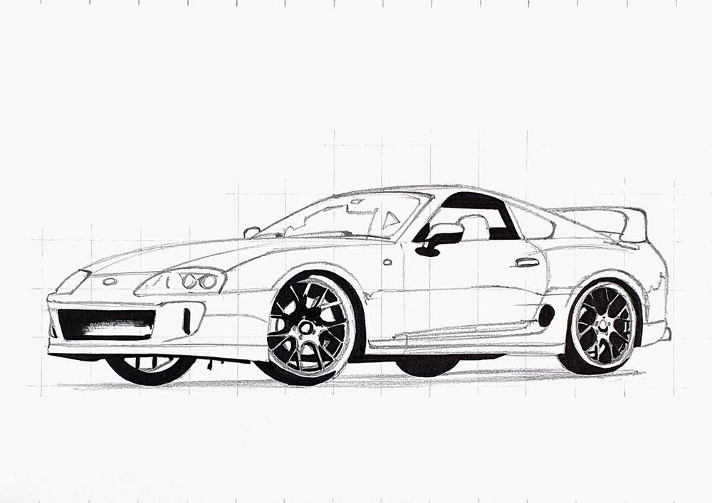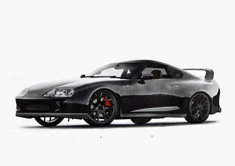 It's been a few months since I last drew a car, but I'm super excited to draw one again after such a long time. And what better car to start with than the legendary Toyota Supra!
