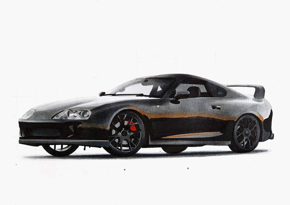 And that's how you draw a simple yet realistic-looking Toyota Supra MK4 with markers and 2 colored pencils.