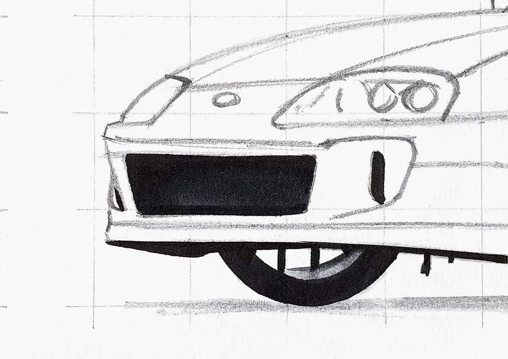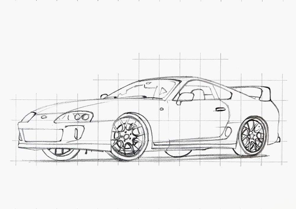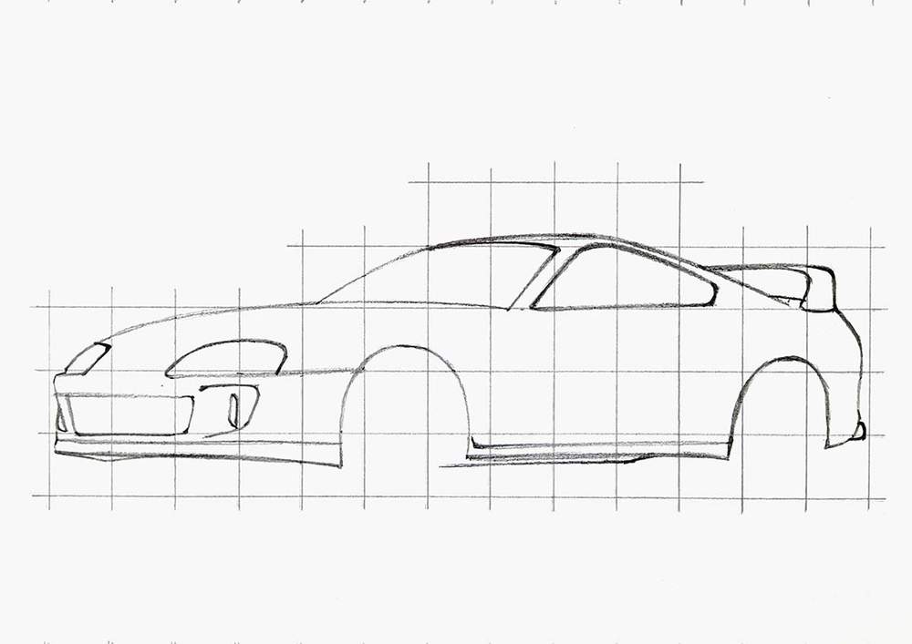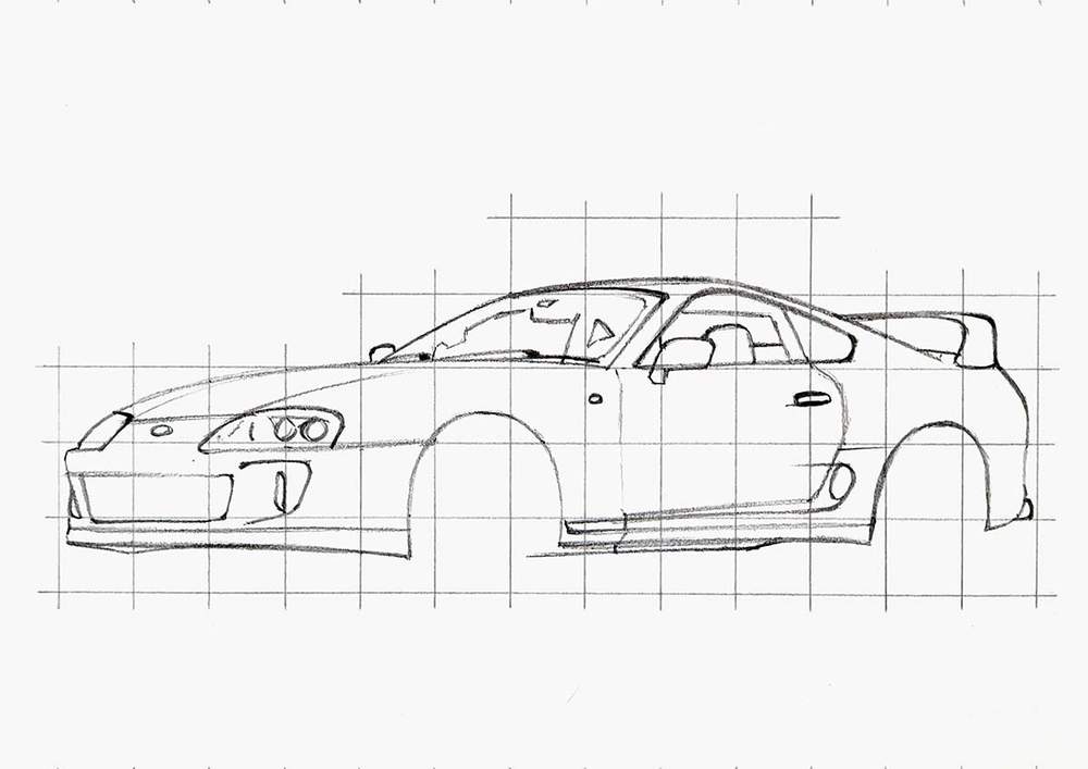 Now that we've found a good reference photo, we can start using it to sketch the basic outline of the Supra.