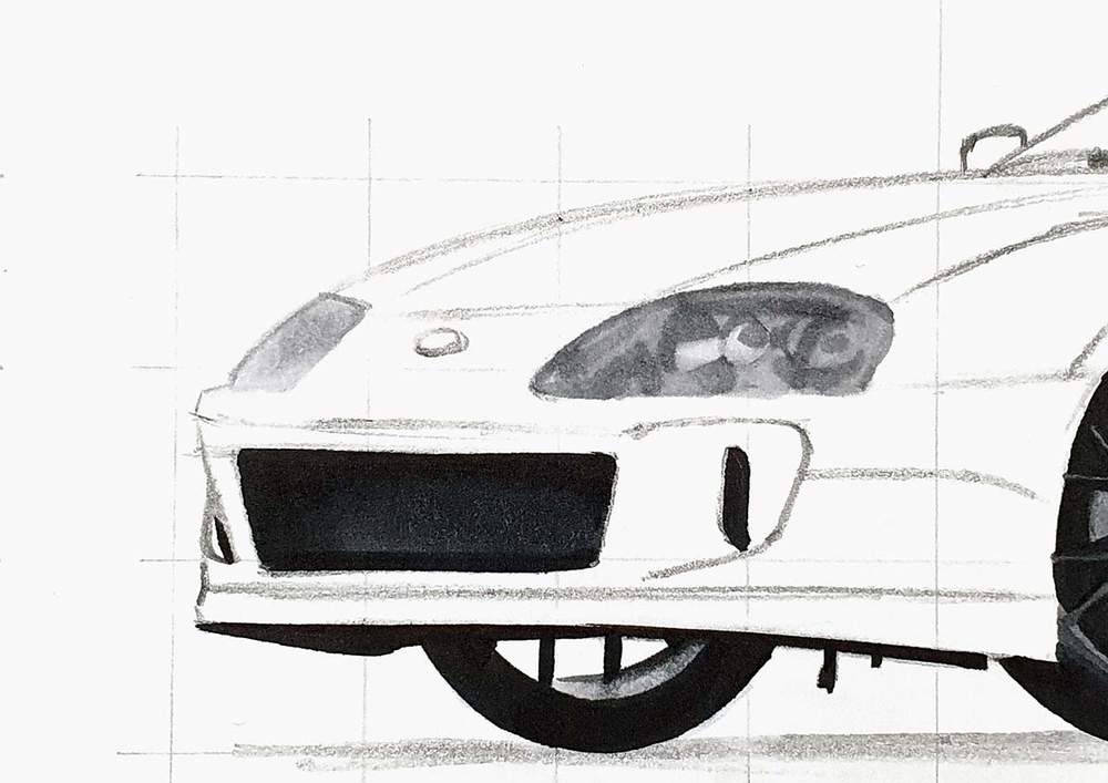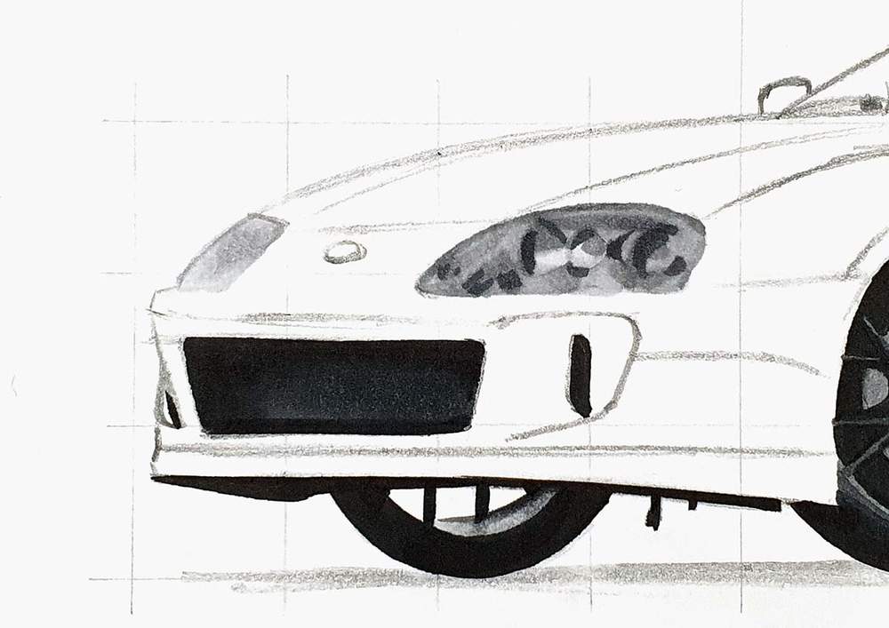 During this step, I also positioned the Toyota Supra where I wanted it to be on my paper. Horizontally centered and vertically just below the center.