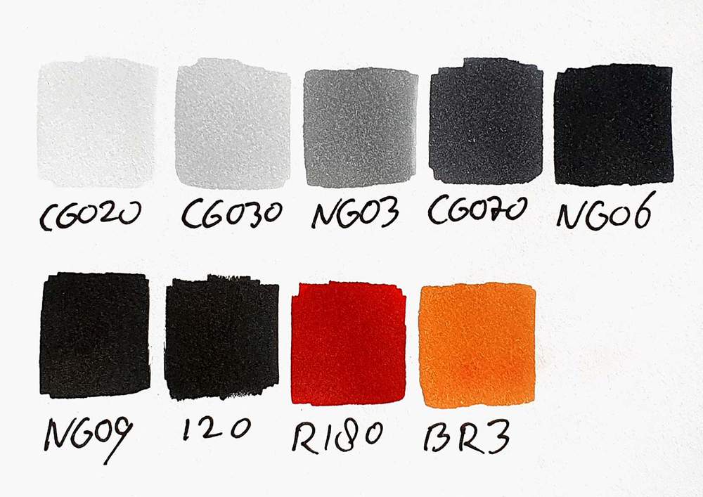 To make this drawing, I used Ohuhu Honolulu markers in the colors Colorless Blender (0), Neutral Grey 02 (CG020), Neutral Grey 03 (CG030), Neutral Grey 3 (NG03), Neutral Grey 07 (CG070), Neutral Grey 6 (NG06), Neutral Grey 9 (NG09), Black (120), Bright Red (R180), and Rose Beige (BR3).