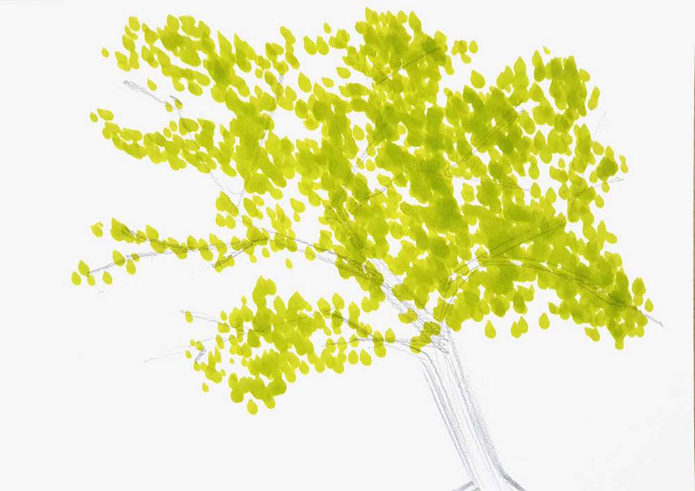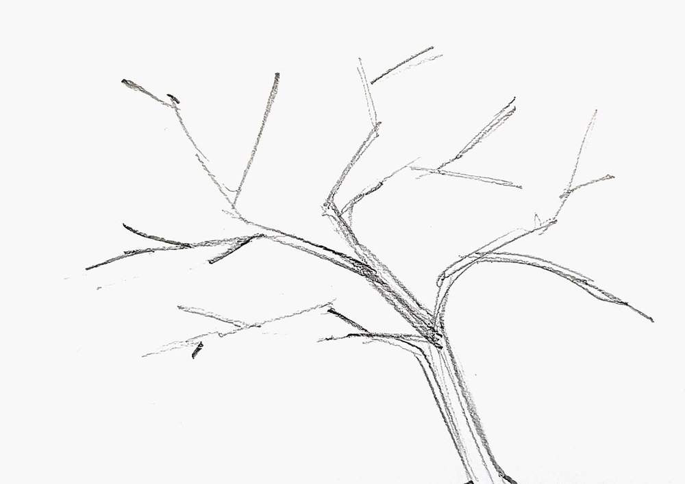 To draw this tree, I first marked out roughly where I wanted the trunk to be.