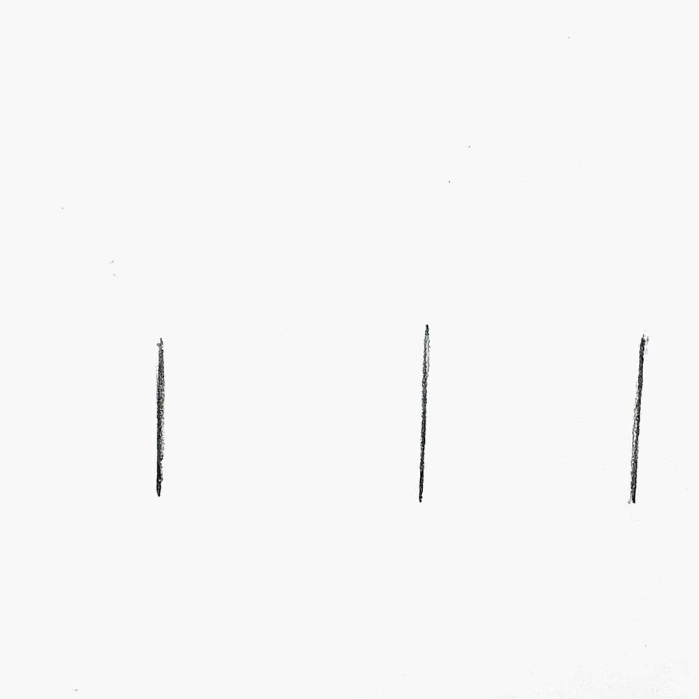 I started by drawing 3 vertical parallel lines with equal spacing, a little below and to the right of the center of the paper.