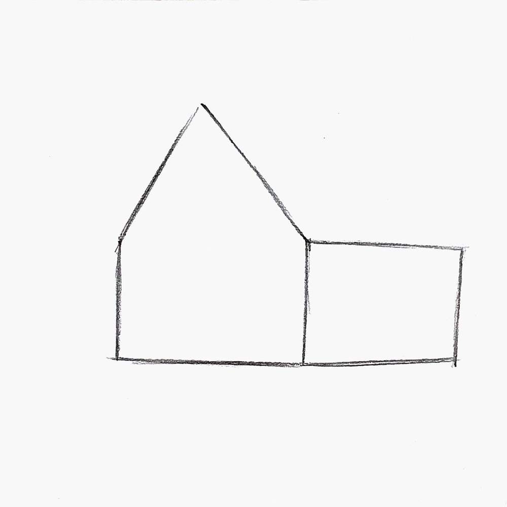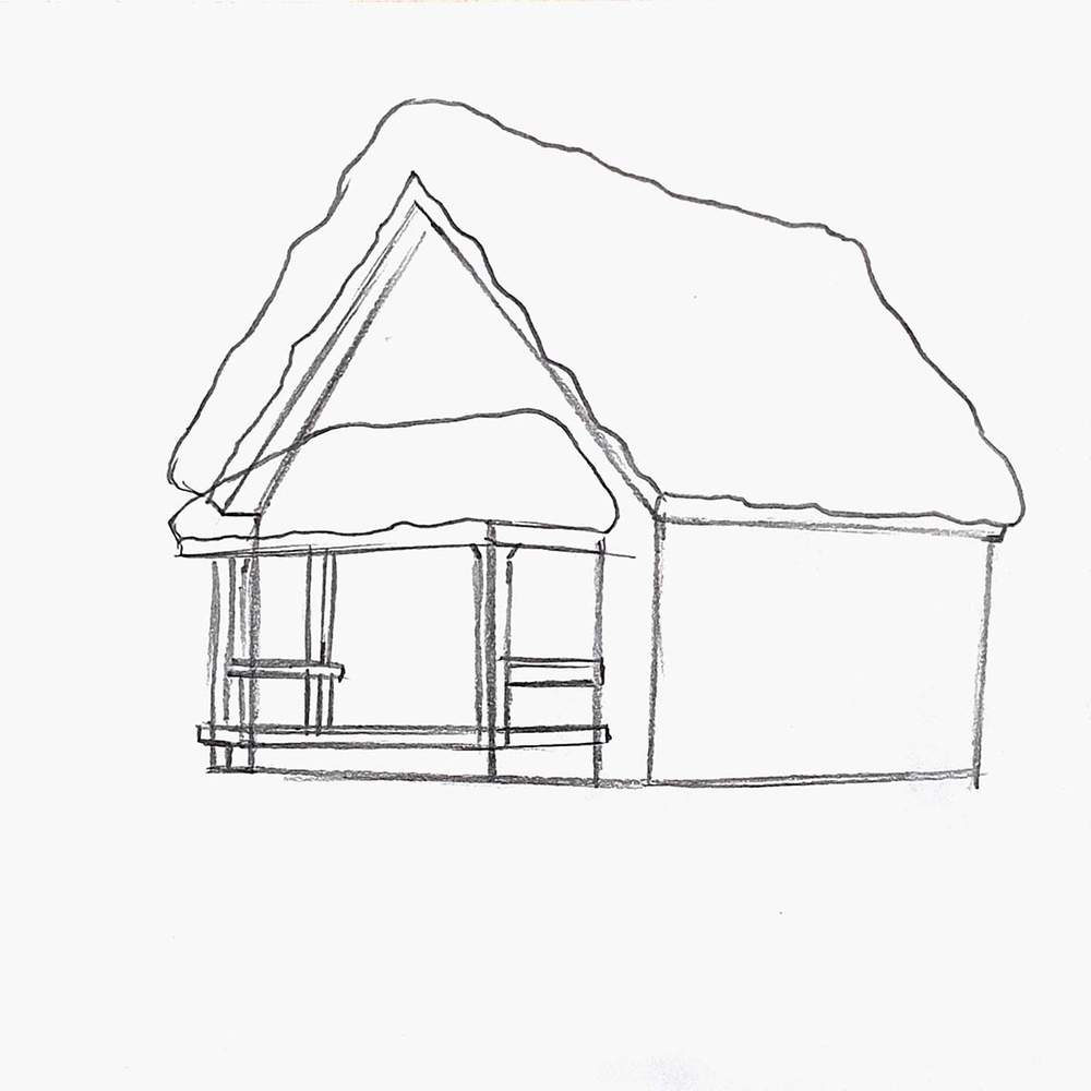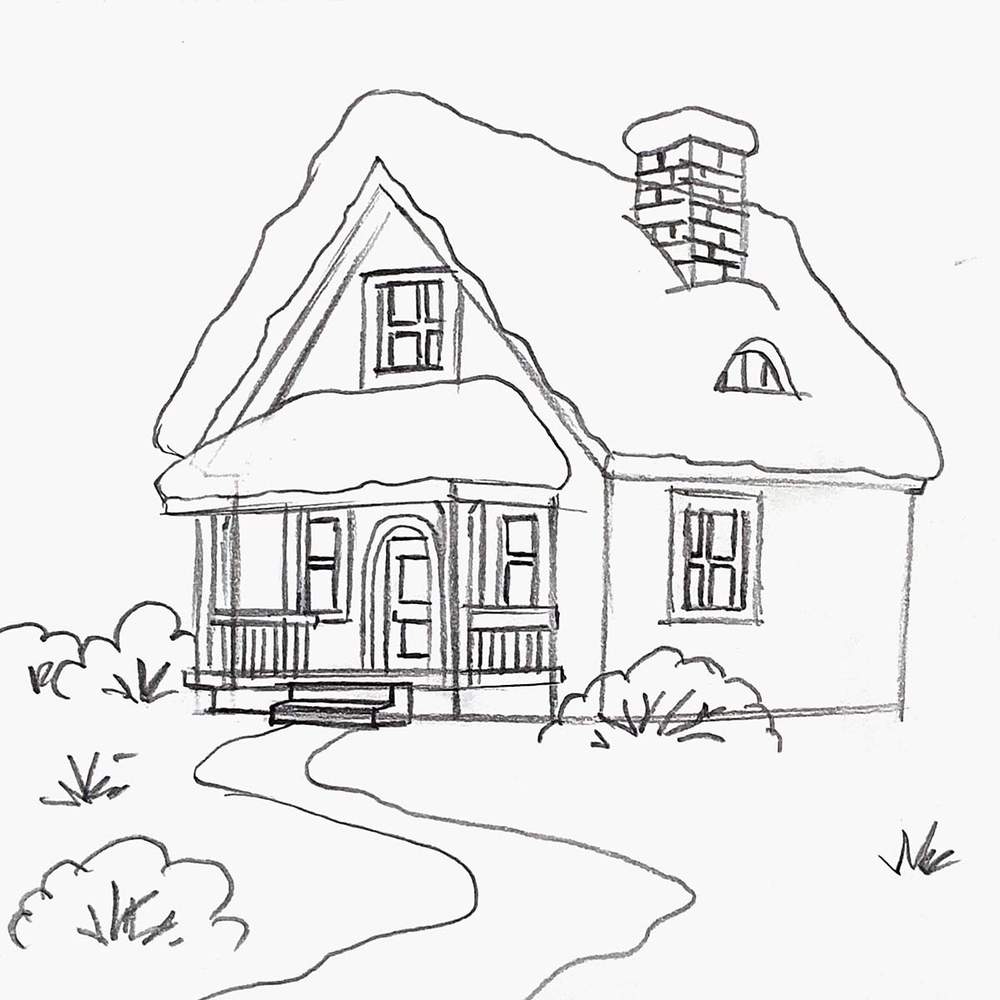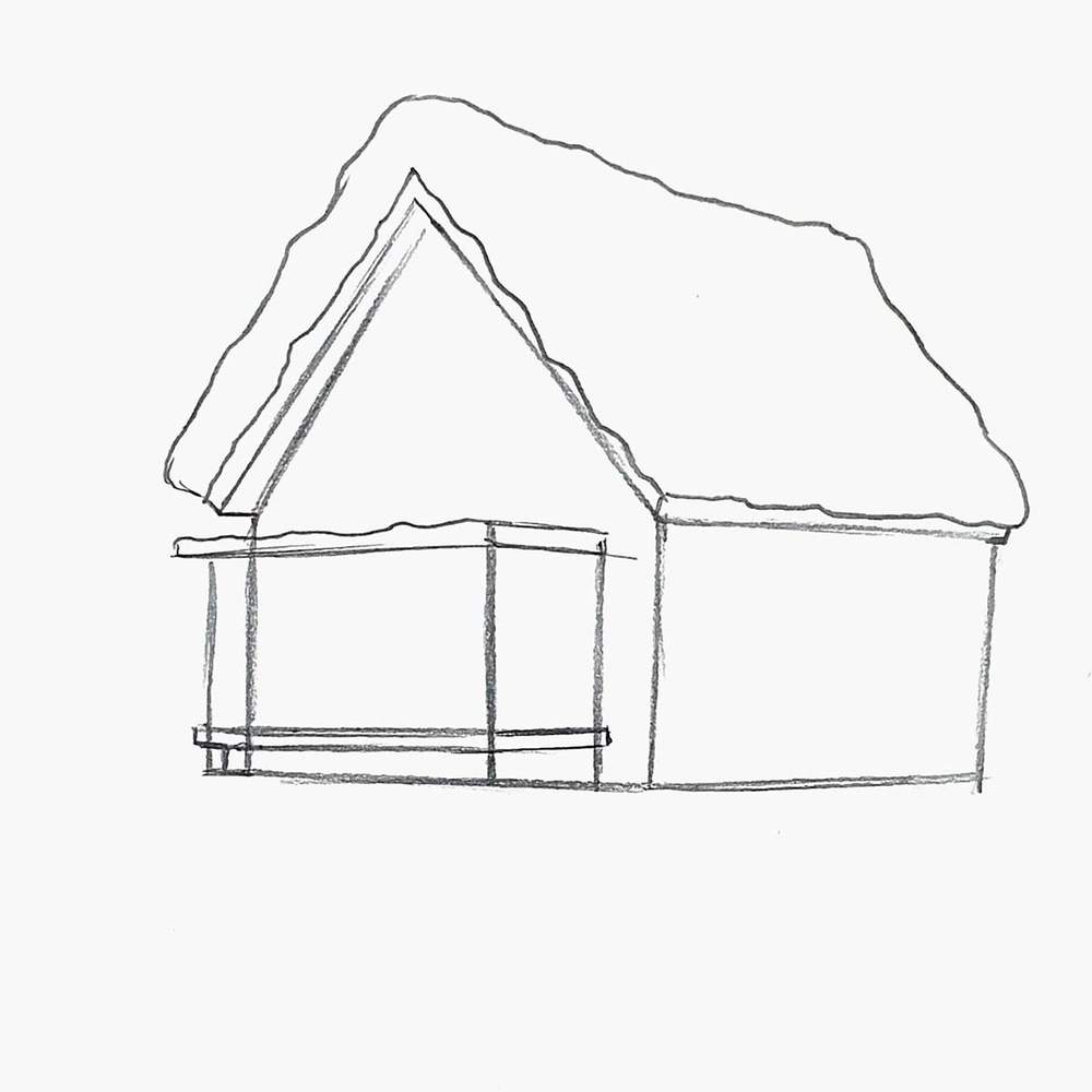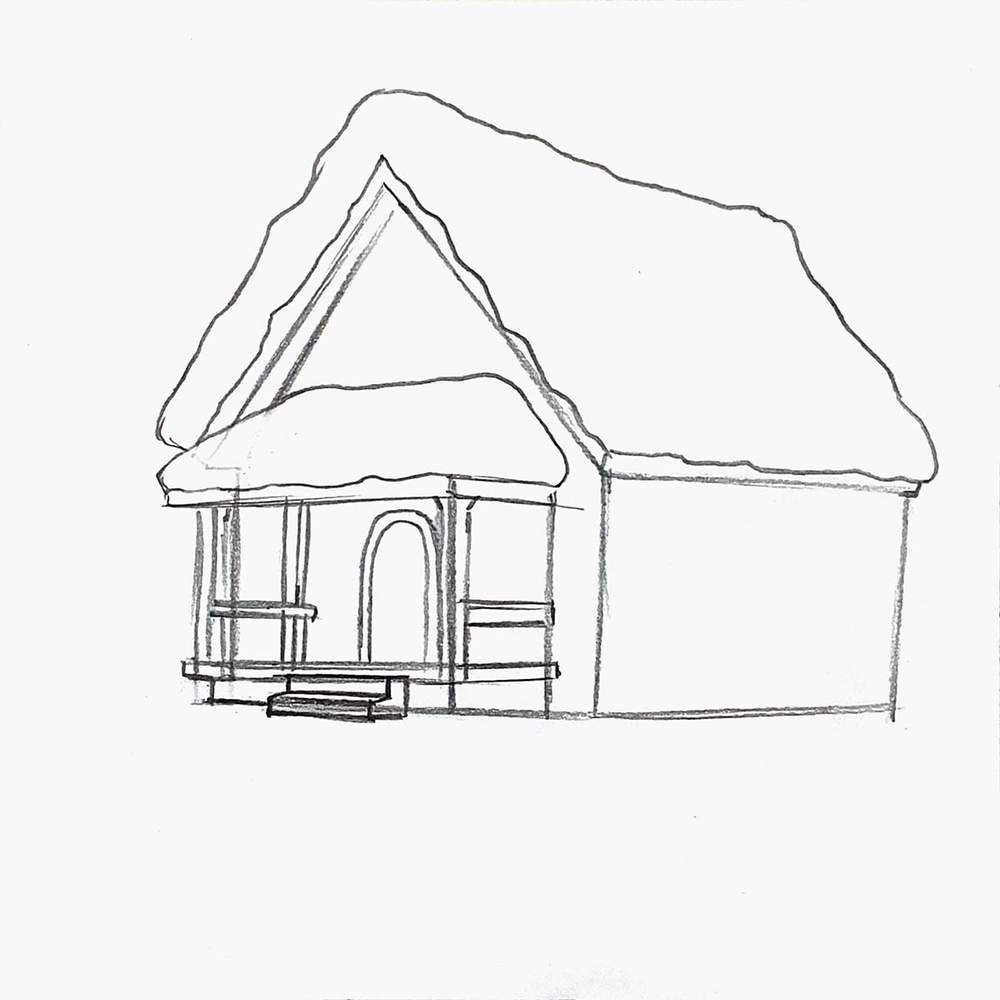 To draw our cozy winter house, I first sketched the basic shape of the house.