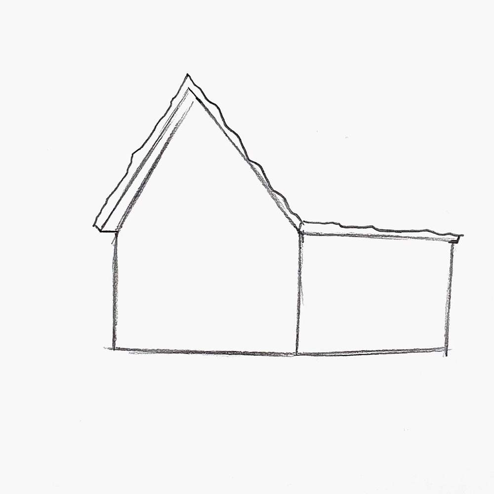 Next, I added a flat line connecting them at the bottom and sketched the classic pointed roof shape.