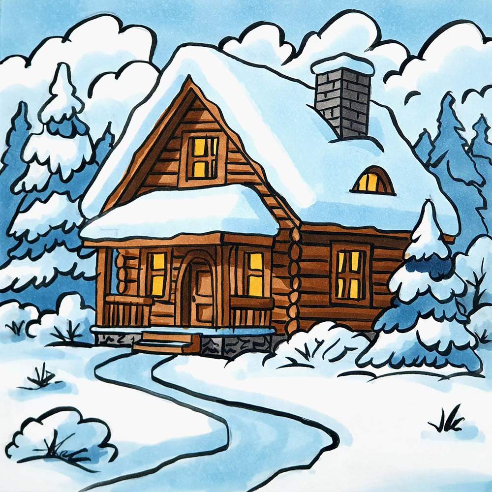 There’s something magical about a snow-covered cabin in the woods, especially when you get to draw it yourself!