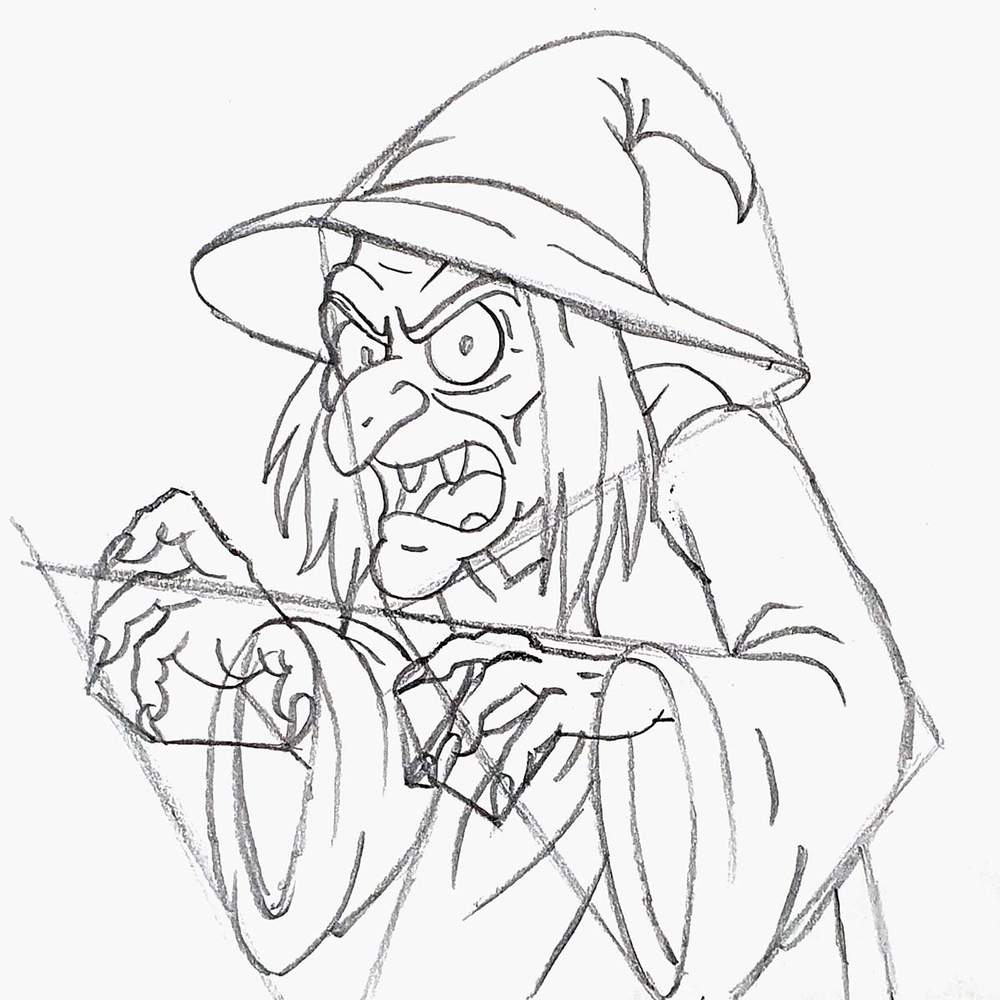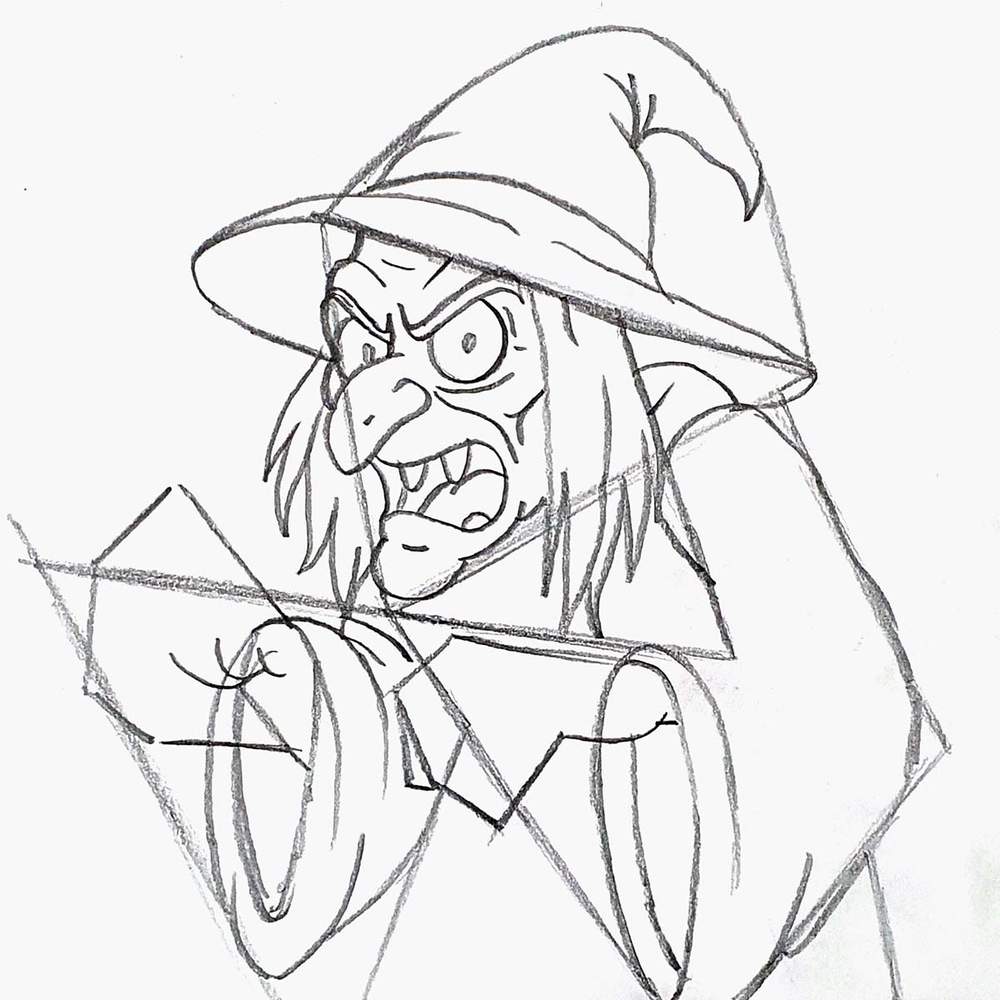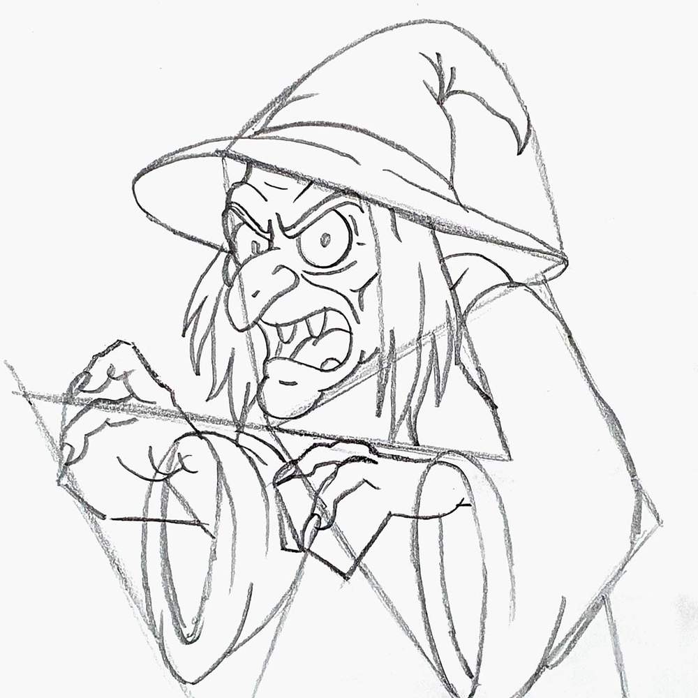 With the basic shapes in place, sketching the witch becomes a lot easier.