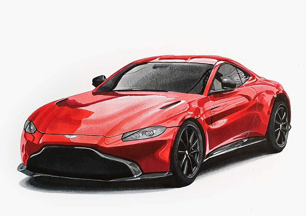 Now that the sketch is fully done, we can start coloring the Aston Martin with some markers.
