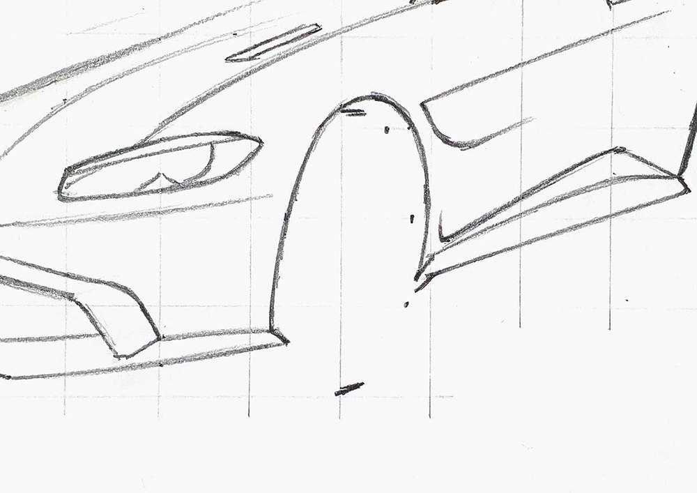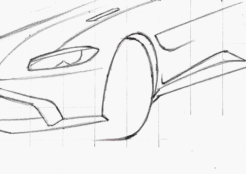 With the grid now sketched, I started sketching the outline of the Vantage.