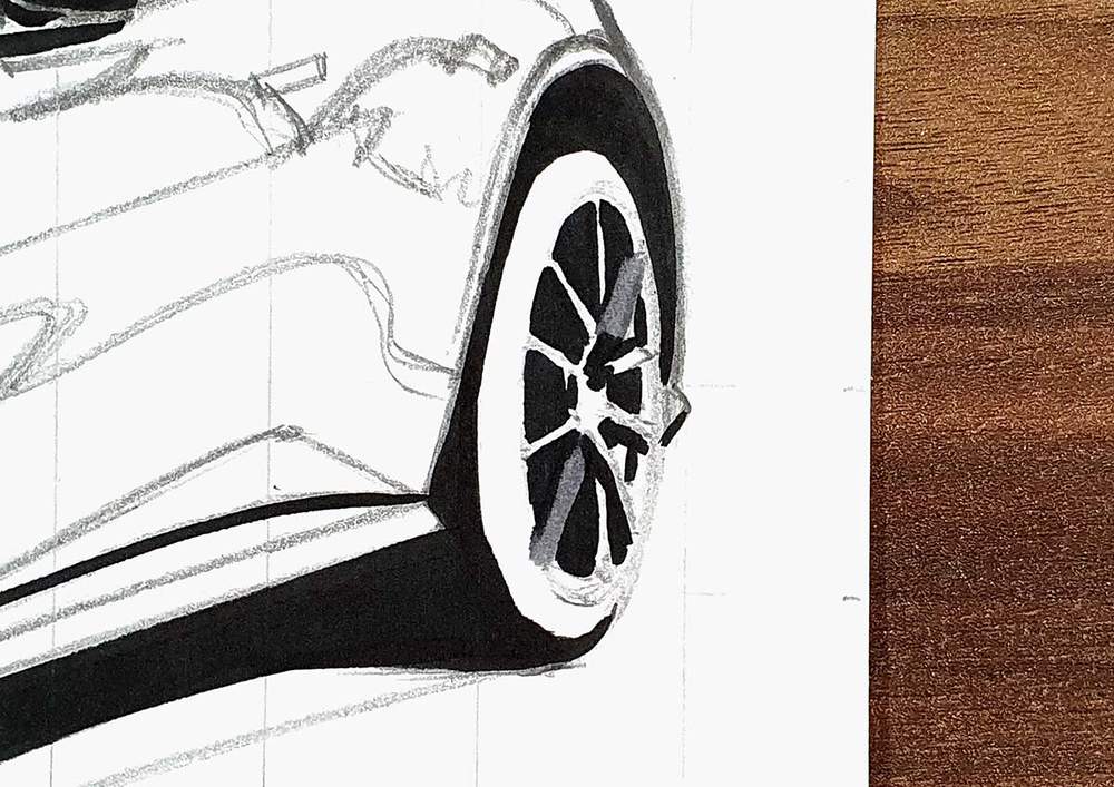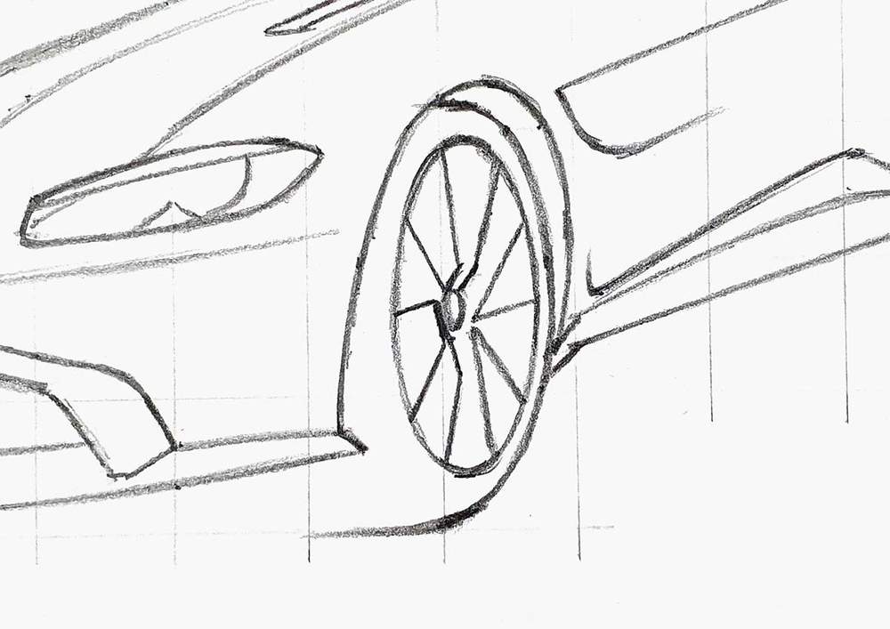 Sketching wheels can be a little bit tricky. If they look wonky, you're whole drawing will feel off, so it's crucial to take your time and try to make them as good as you can.