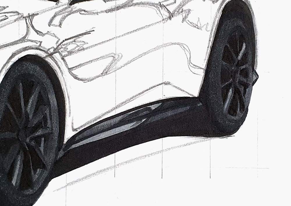 After that, I sketched all the details on the car, like the logo, the vents on the hood, the body lines, etc.