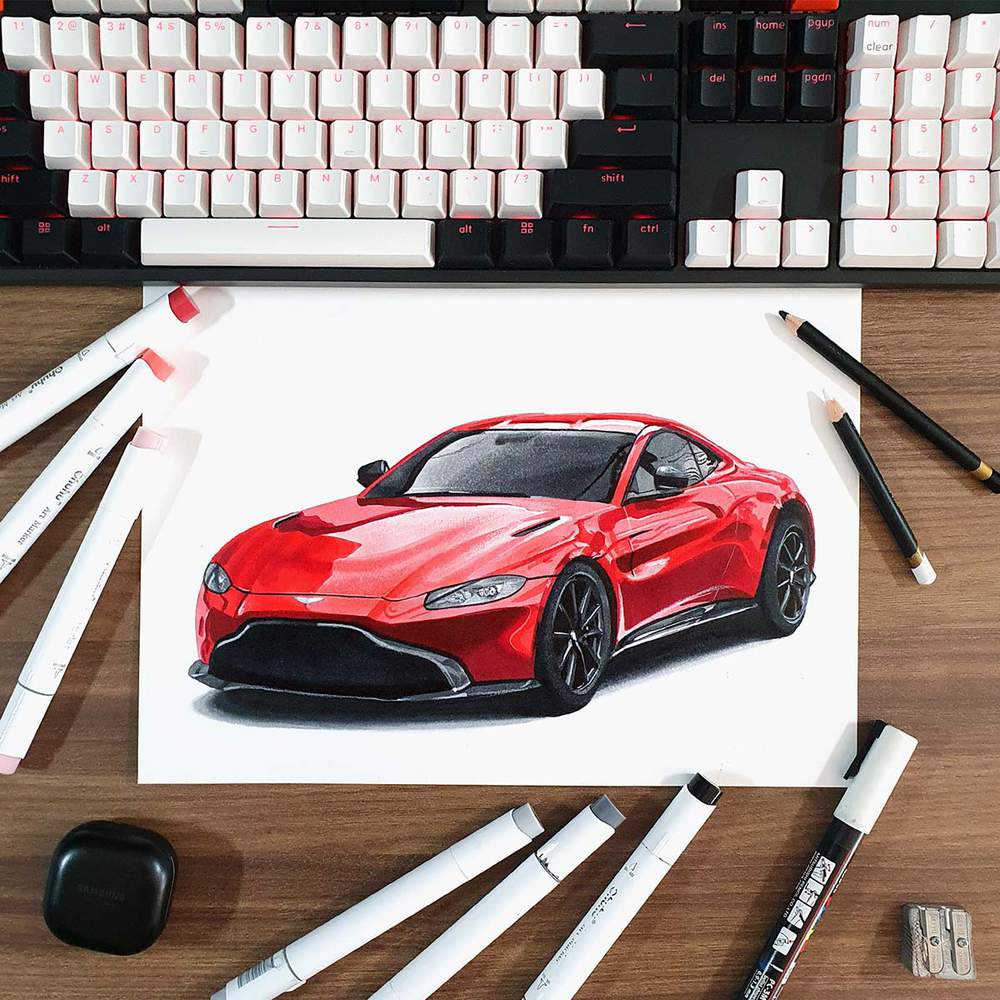 Final Result: Finished Realistic Aston Martin Vantage Drawing