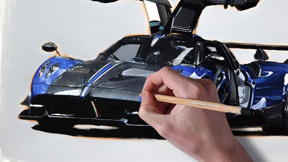 That's where white colored pencils and white watercolor pencils come in handy. White pencils are very handy for drawing those lighter lines in carbon fiber parts.